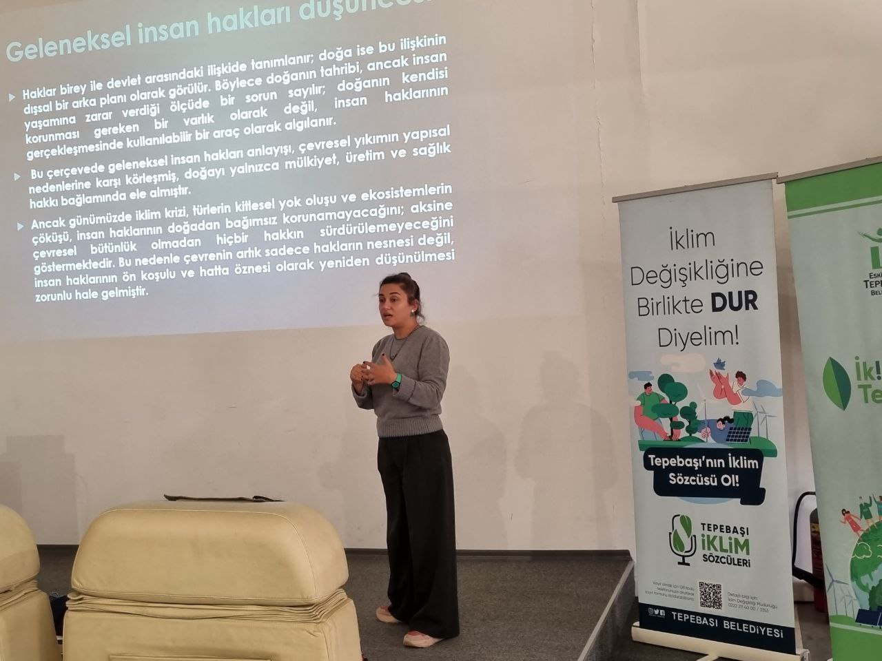 Tepebaşı Belediyesi tarafından Tepebaşı İklim Sözcülerine yönelik düzenlenen Tepebaşı Belediyesi İklim Sözcüleri ile İklim Akademi Eğitimleri kapsamında “İklim ve İnsan Hakları” konusu ele alındı.