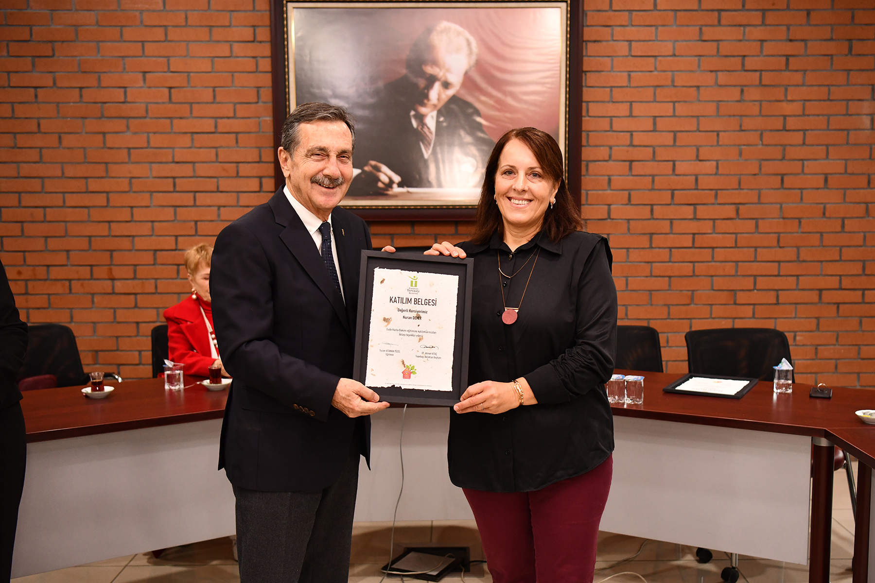 6 haftanın sonunda tamamlanan eğitimin sonunda katılımcılara belgeleri Tepebaşı Belediye Başkanı Dt. Ahmet Ataç tarafından encümen salonunda takdim edildi. Belge takdim programında konuşan Başkan Ataç, katılımcıları tebrik ederek aldıkları eğitimin, olası bir hastalık durumunda faydası olacağını söyledi.