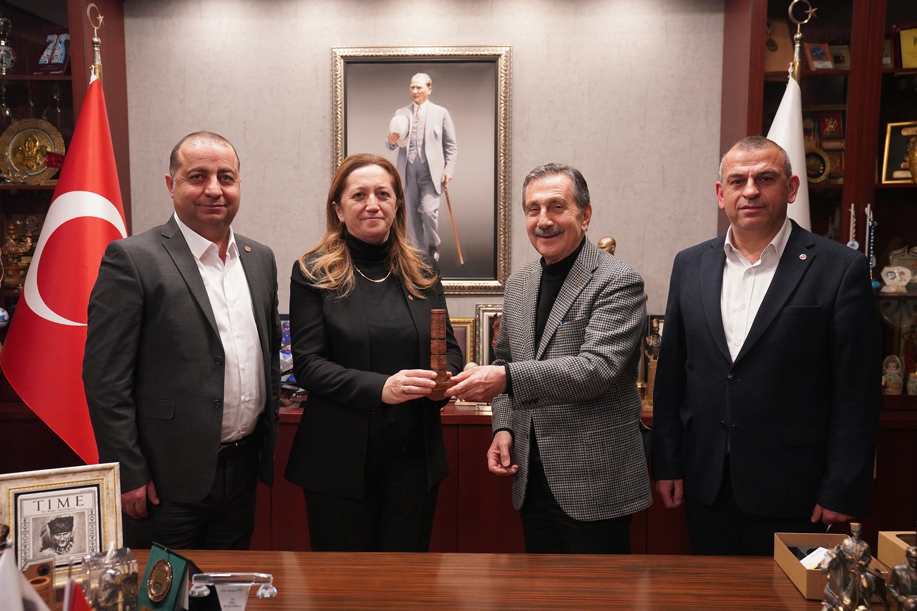 Basın açıklamasının ardından Başkan Ataç, Çerkezoğlu ve beraberindeki heyeti makamında ağırladı. Çerkezoğlu, Tepebaşı Belediyesi’nin çalışmalarını beğeni ile takip ettiğini ifade ederek emekçi dostu bir belediye başkanı olduğu için Başkan Ataç’a teşekkür etti.