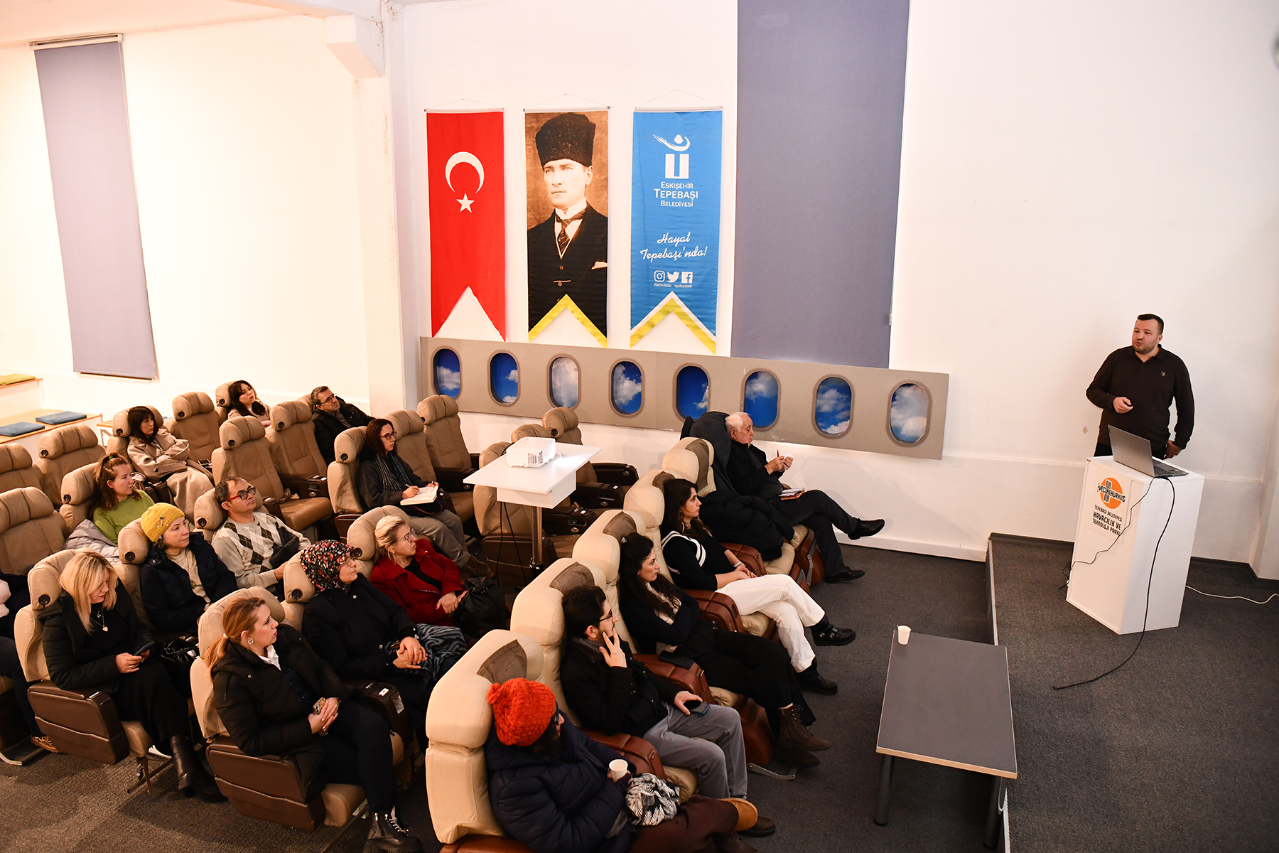 Vecihi Hürkuş Havacılık ve Teknoloji Parkı’nda düzenlenen eğitimde “Kentsel ve Kurumsal Sürdürülebilirlik” konusu işlendi. Eğitimde; Tepebaşı Belediyesi’nin yerel düzeyde hayata geçirdiği sürdürülebilir kalkınma odaklı çalışmaları ile Birleşmiş Milletler Sürdürülebilir Kalkınma Amaçları (SKA) ile uyumlu projeler ve uygulama örnekleri ele alındı. Ayrıca sürdürülebilir enerji, iklim eylem planı çerçevesinde yürütülen faaliyetler, iklim değişikliyle mücadele ve uyum çalışmaları, enerji verimliliği ile yenilenebilir enerjiye yönelik yerel uygulamalar hakkında bilgi verildi.