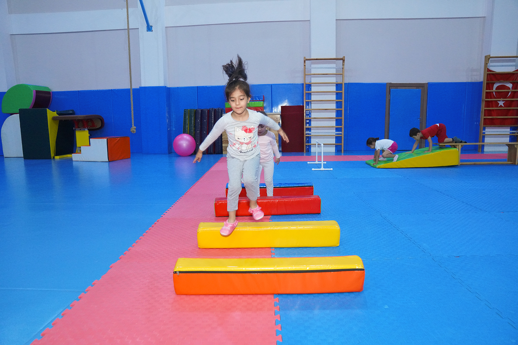 Uzman eğitmenler eşliğinde yapılan jimnastik eğitimlerinde çocuklar; esneklik, denge, koordinasyon ve kas gelişimini destekleyen çalışmalarla sağlıklı bir şekilde spor yapma imkanı bulurken yaş gruplarına uygun olarak planlanan eğitim programları sayesinde çocuklar hem eğleniyor hem de disiplinli spor alışkanlığı kazanıyor.