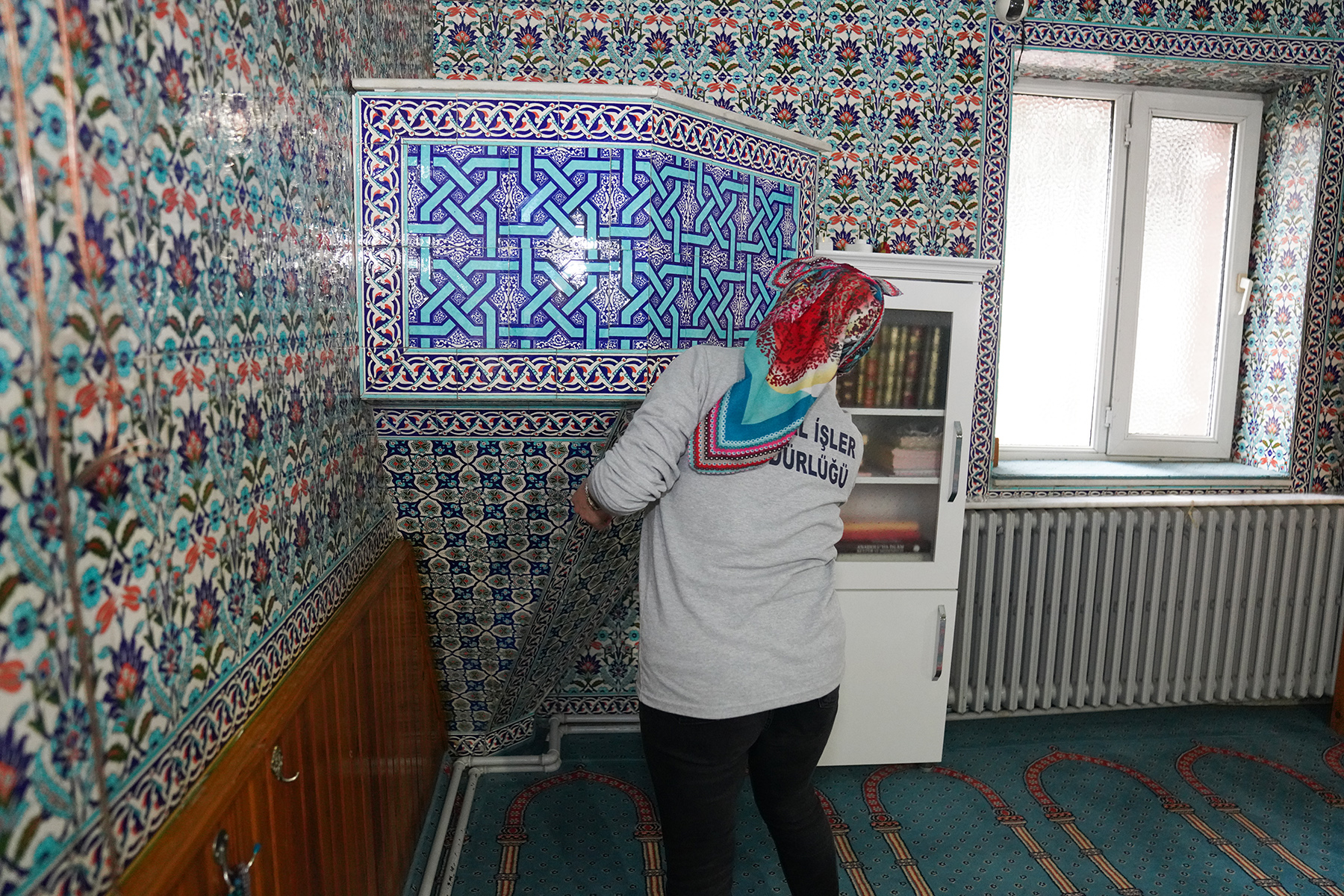 Gerçekleştirilen çalışmalar kapsamında camilerin iç ve dış alanlarında detaylı temizlik yapılıyor. Yoğun kullanım alanı olan halılar özel ekipmanlarla yıkanarak dezenfekte ediliyor; pencereler, camlar ve çerçeveler özenle siliniyor. Avizeler ve aydınlatma sistemleri tozdan arındırılırken, mihrap, minber ve kürsü gibi bölümlerde de kapsamlı hijyen uygulamaları gerçekleştiriliyor. Abdesthane ve tuvalet alanları başta olmak üzere vatandaşların kullandığı tüm ortak alanlar titizlikle temizleniyor.