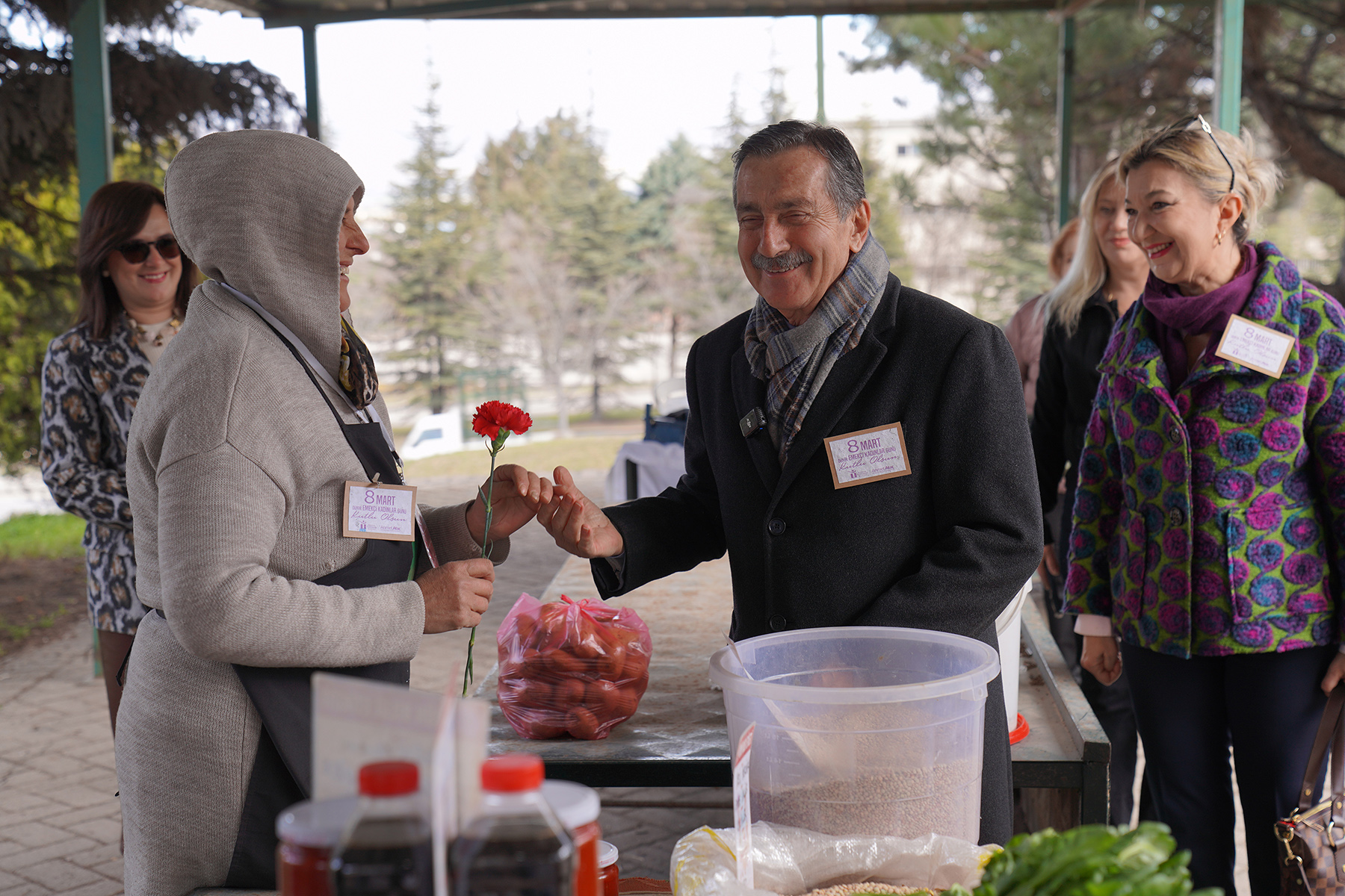 Tepebaşı Belediye Başkanı Dt. Ahmet Ataç, Tepebaşı Belediyesi Kadın Üretici Ürün Satış Noktası projesine katılan kırsal mahalle sakini kadınları ziyaret ederek, 8 Mart Dünya Kadınlar Günü’nü kutladı.