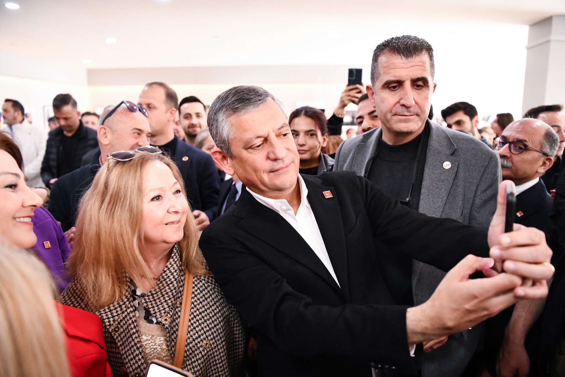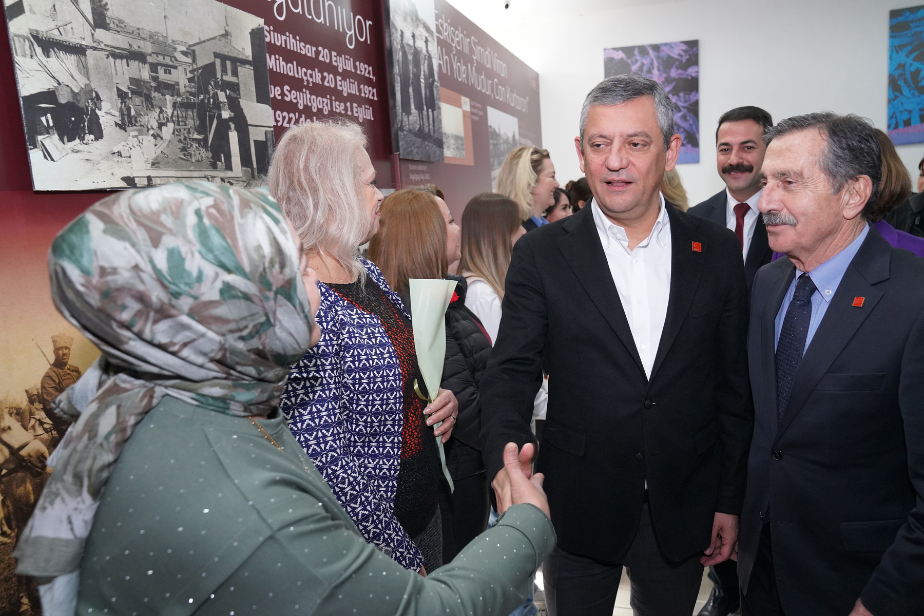 Sergi açılışına vatandaşlar yoğun ilgi gösterirken CHP Genel Başkanı Özgür Özel, açılışa katılan vatandaşlar ile sohbet ederek fotoğraf çektirdi.