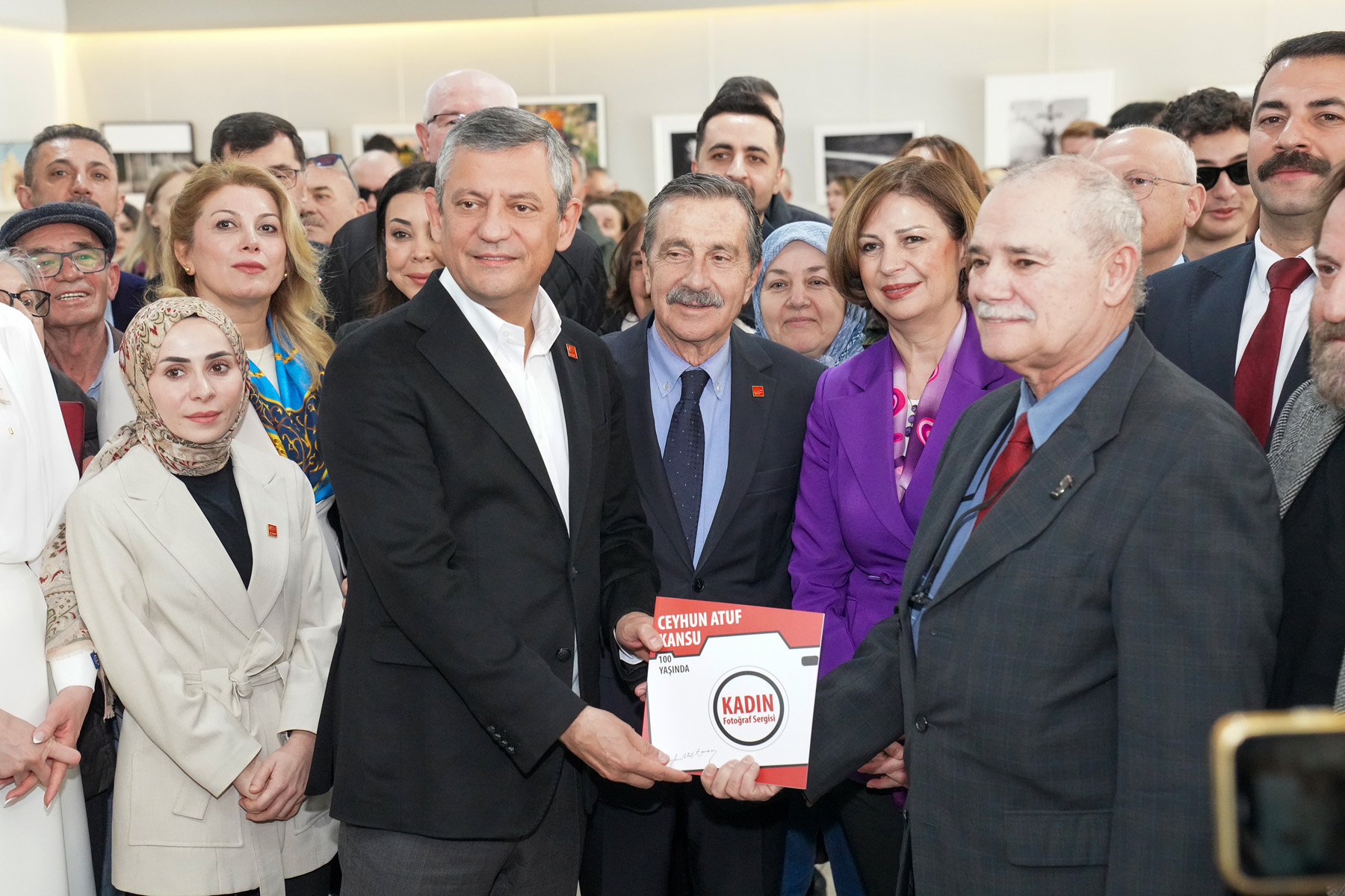 Sergi açılışının ardından Küratör Güven Baykan CHP Lideri Özel’e imzalı bir fotoğraf hediye ederken Işık Kansu da serginin bilgilerinin ve Ceyhun Atuf Kansu’nun şiirlerinin bulunduğu kitabı hediye etti.