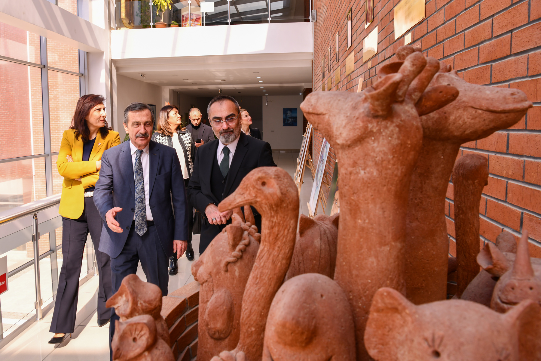 Ödül takdiminin ardından ise Başkan Ataç Genel Sekreter Yıldız ve beraberindeki heyeti, pişmiş toprak sempozyumu eserlerini ve Kağıt Geri Dönüşüm Atölyesini gezdirdi. Tepebaşı Belediyesi ana hizmet binası içerisinde yer alan eserlere ve atölyeye hayran kaldıklarını belirten heyet, Tepebaşı Belediye Başkanı Ahmet Ataç’a çalışmalarında başarılar diledi.
