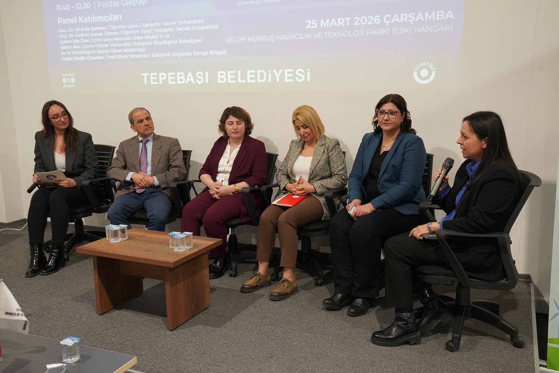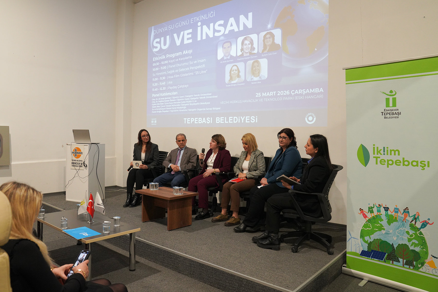 Suyun hayatımızdaki önemini, sürdürülebilirlik kavramının su kaynakları üzerindeki etkisini vurgulamak, suyun verimli kullanımının sanayi ve diğer sektörler için ne kadar kritik olduğunu ele almak amacıyla düzenlenen “Su ve İnsan” konulu panel Tepebaşı Belediyesi Vecihi Hürkuş Havacılık ve Teknoloji Parkı’nda gerçekleştirildi. Panele Tepebaşı Belediye Başkanı Dt. Ahmet Ataç’ın yanı sıra Seyitgazi Belediye Başkanı Uğur Tepe, konuşmalarını yapmak üzere ise Eskişehir Teknik Üniversitesi Öğretim Üyeleri Doç. Dr. Ali Arda Şorman, Doç. Dr. Fadime Karaer Özmen, Eskişehir Büyükşehir Belediyesi Su ve Kanalizasyon İdaresi Genel Müdürlüğü İçme Suyu Havzaları Şube Müdür Vekili Eylem Sıla Özer, Çevre Yüksek Mühendisi Sezen Aka, EOSB Yeşil Birim Yöneticisi Suzan Eroğlu Önpeker ile çok sayıda vatandaş katıldı.