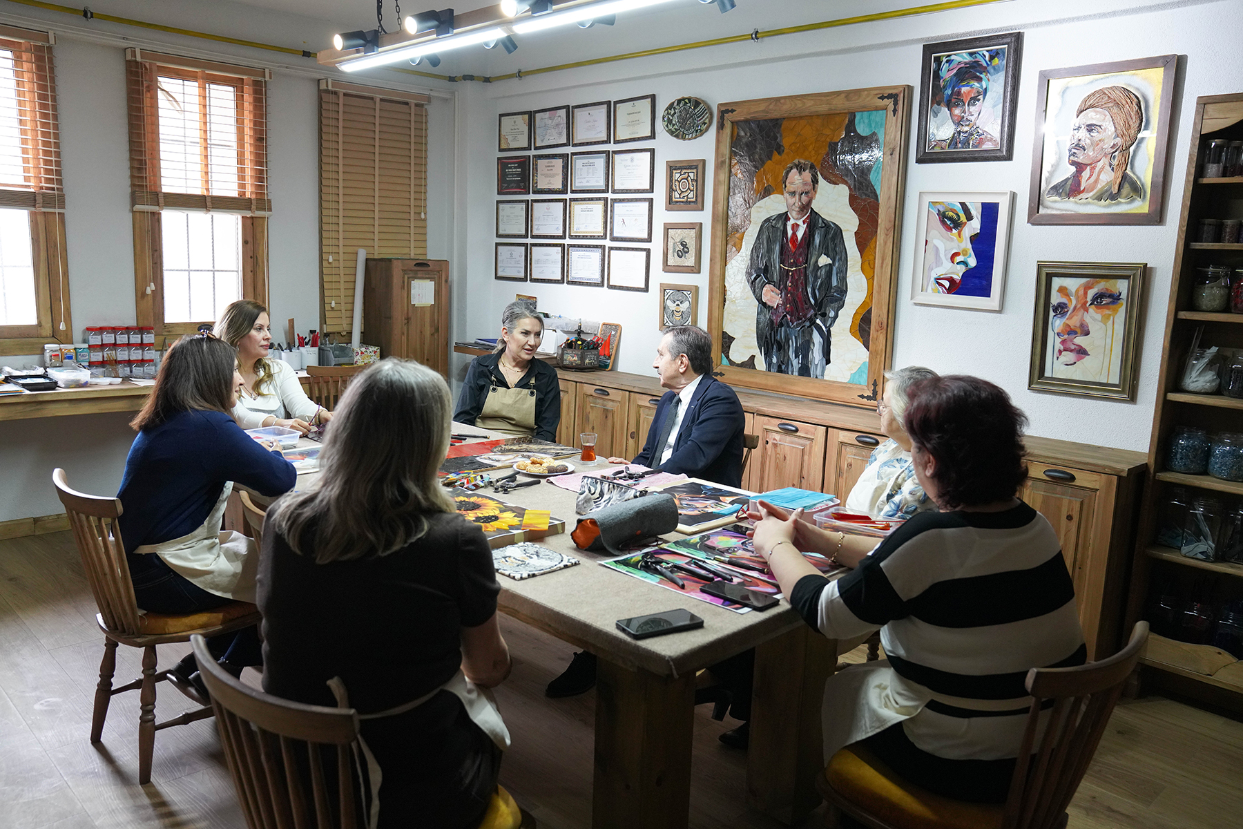 Tepebaşı Belediye Başkanı Dt. Ahmet Ataç, cam sanatçısı Gülşen Bayır’ı atölyesinde ziyaret ederek gerçekleştirilen çalışmalarını inceledi.