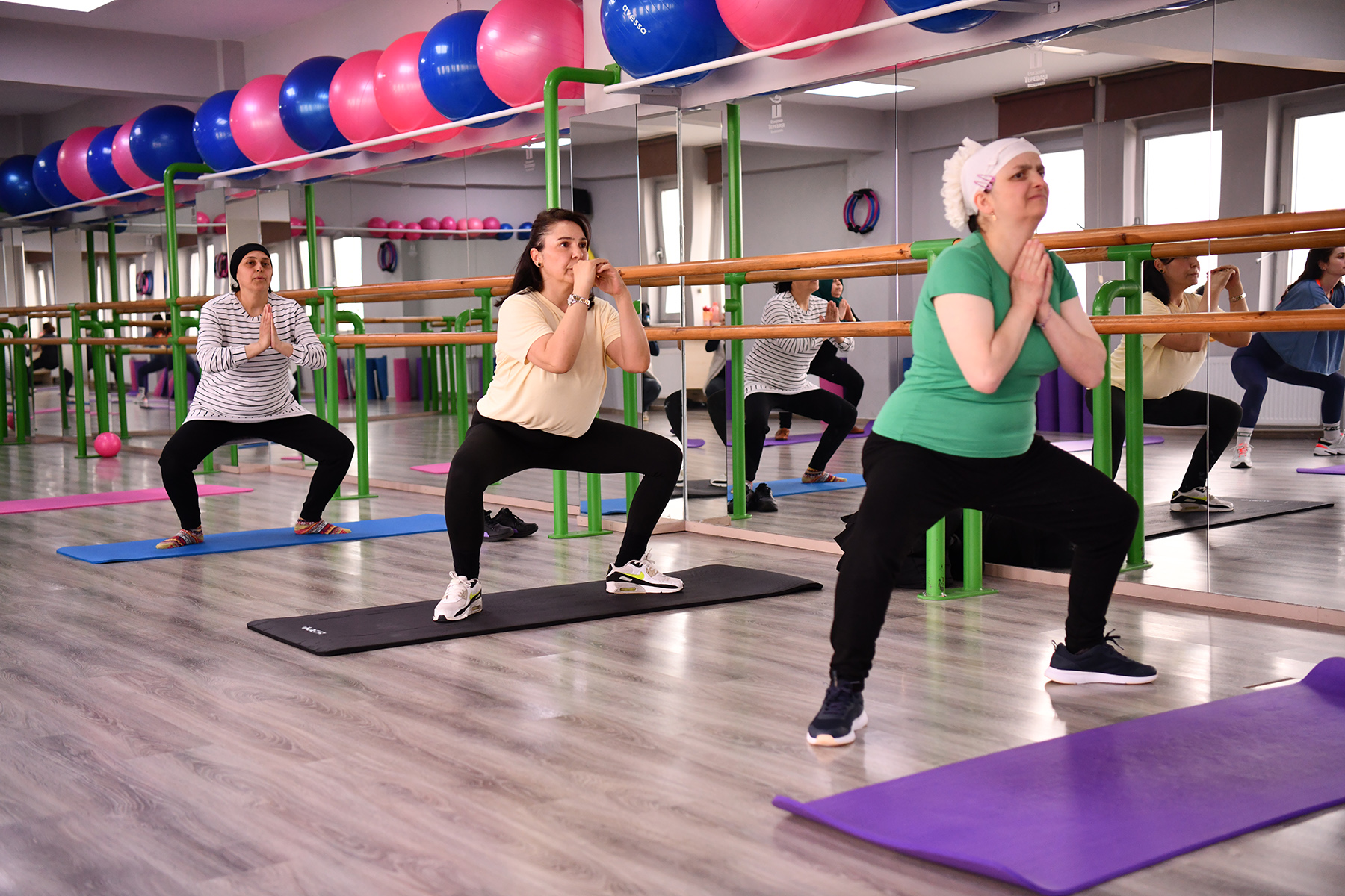 Tepebaşı Belediyesi Yunus Emre Spor Tesisleri yetişkin kursları yoğun katılımla devam ediyor. Fonksiyonel antrenman programına katılan kadınlar, keyifli vakit geçirmenin yanı sıra spor yapıyorlar.