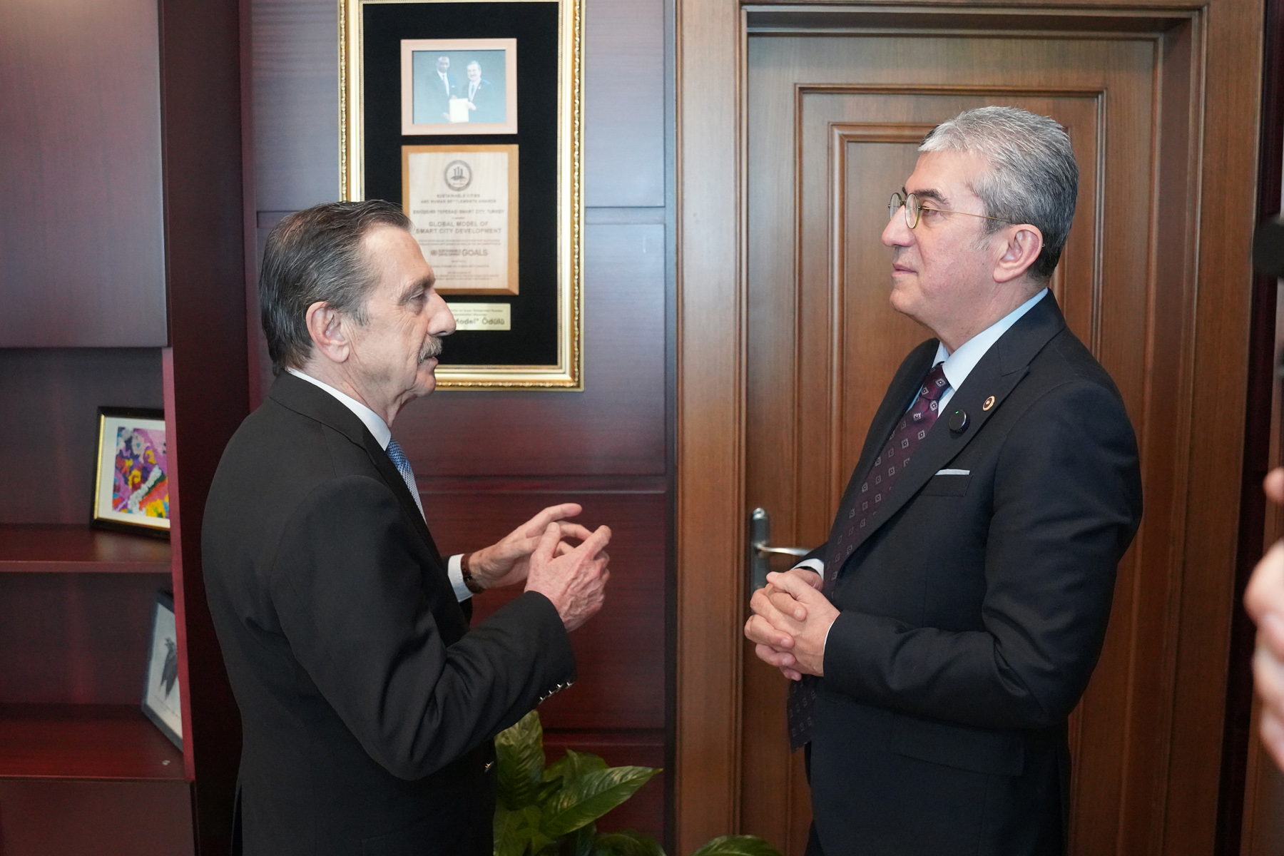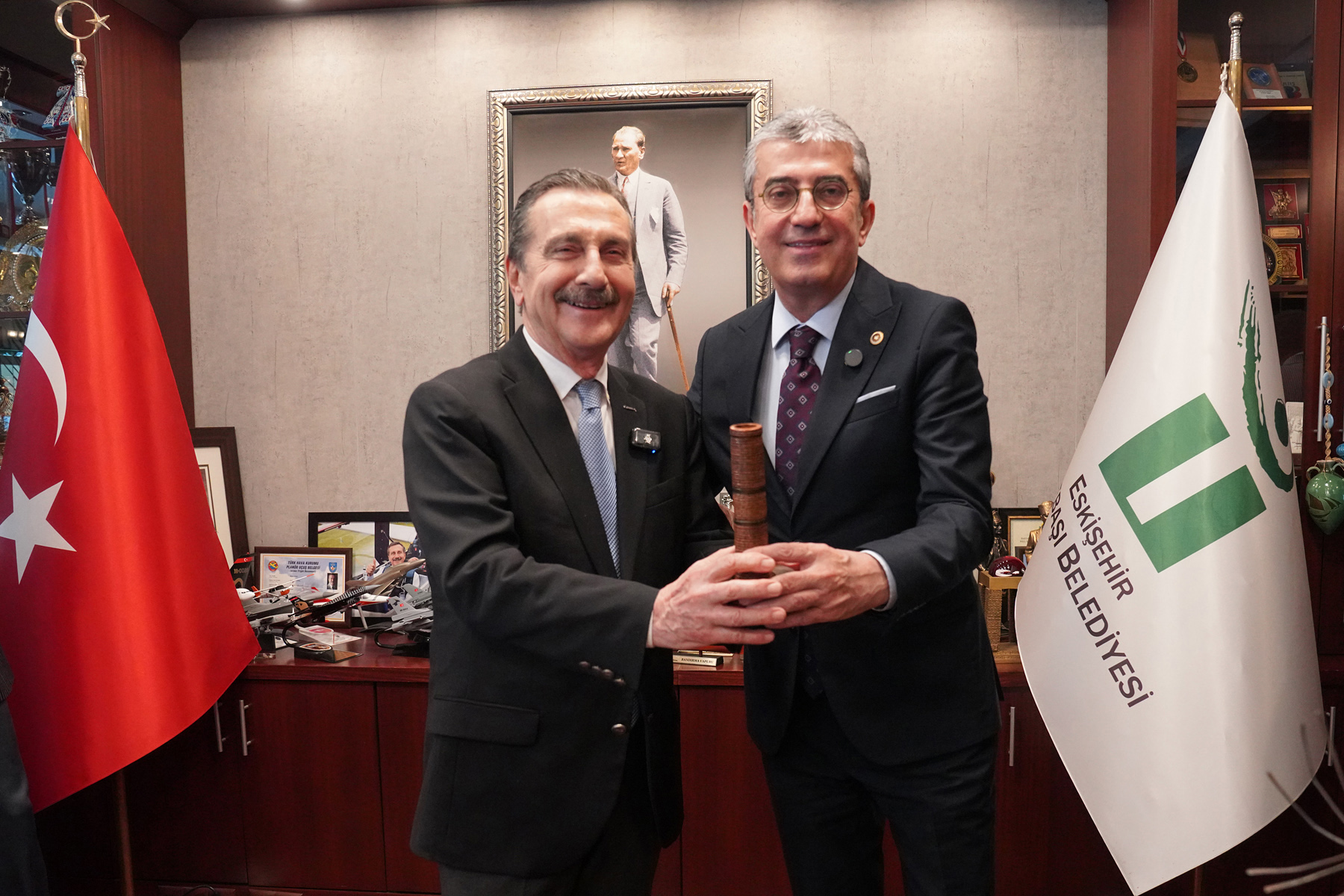 Konuşmaların ardından Başkan Ataç, Grup Başkanvekili Günaydın’ı Tepebaşı Belediyesi hizmet binasında yer alan Uluslararası Eskişehir Pişmiş Toprak Sempozyumu eserlerini gezdirdi. Sanat eserlerini inceleyen Günaydın, “Belediye binası bir sanat galerisi gibi olmuş. Türkiye’de böyle bir belediye binası yok. Burası gerçekten bir galeri” diye konuştu.