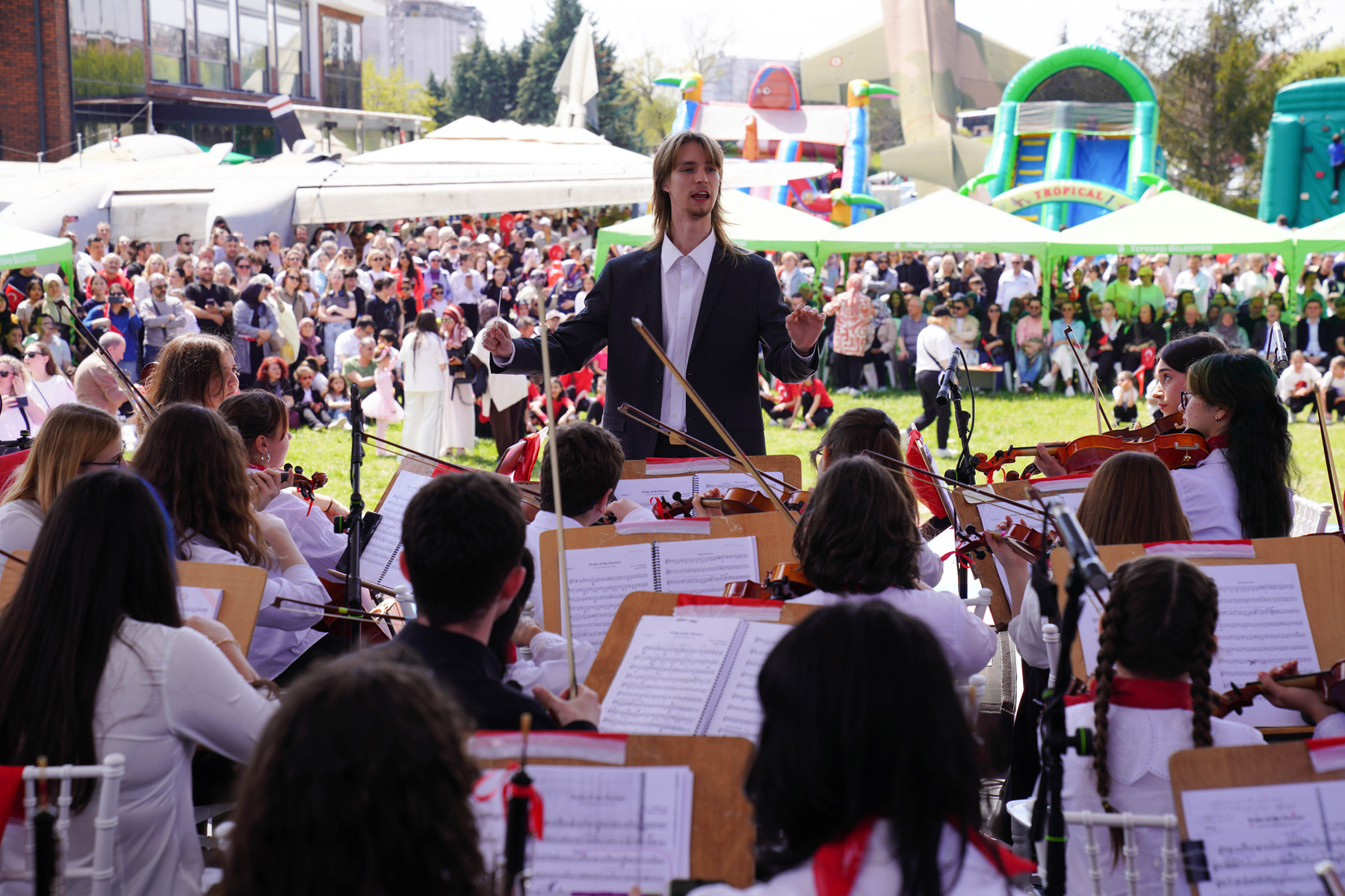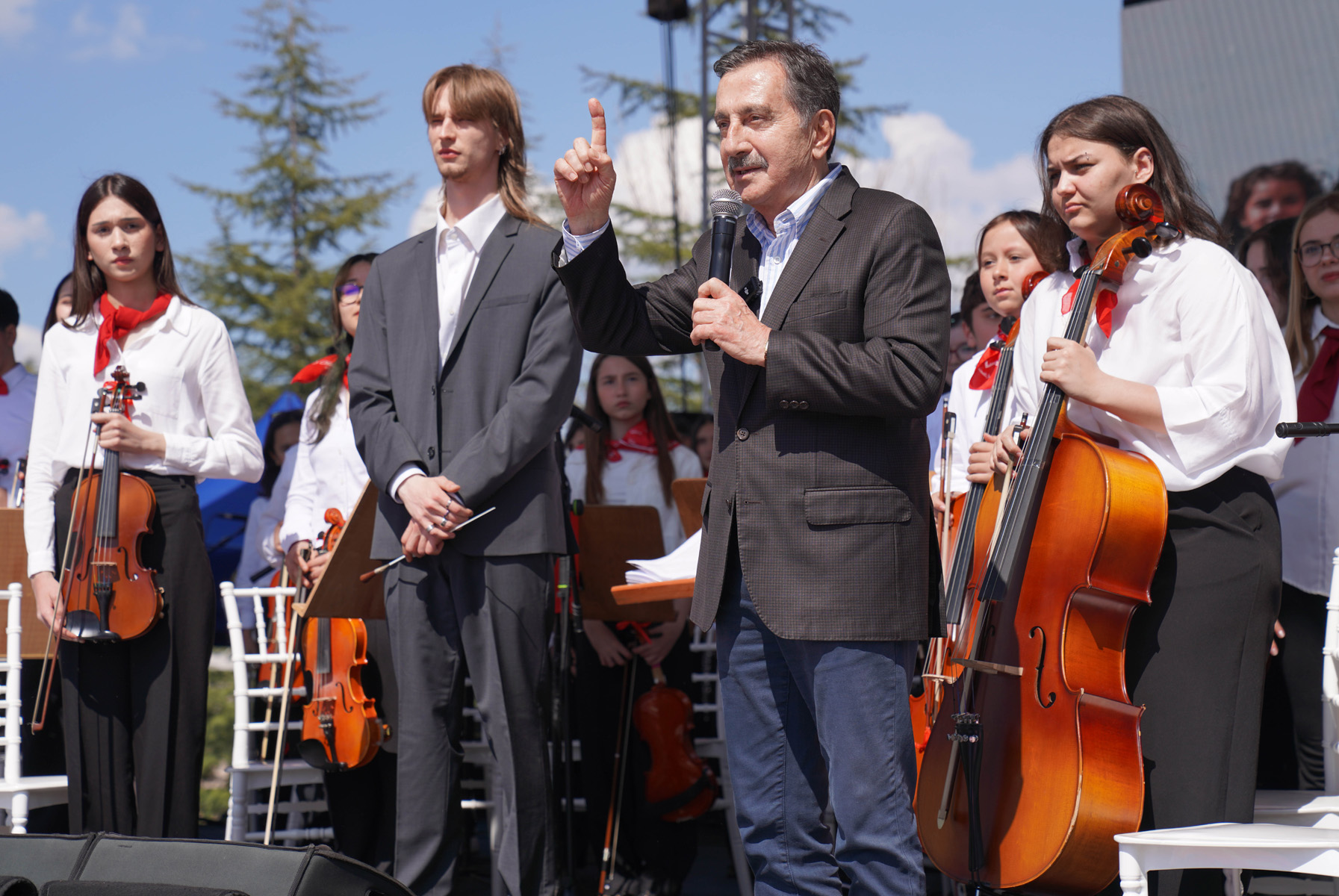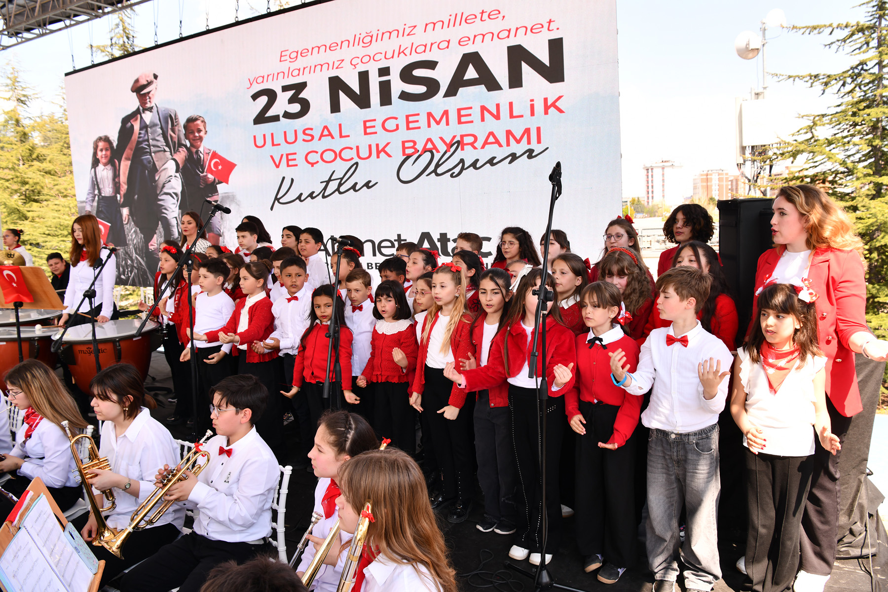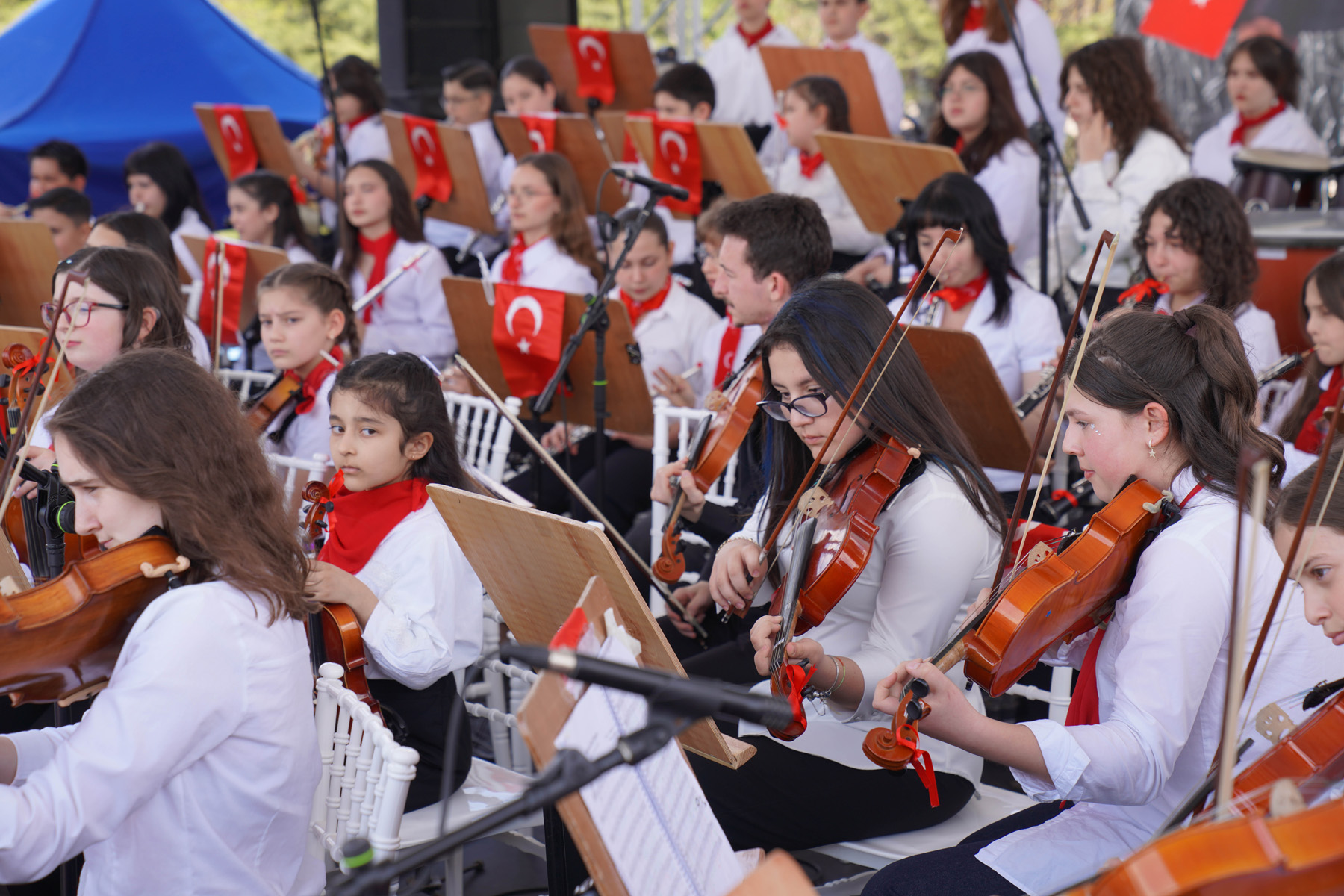 Vecihi Hürkuş Havacılık ve Teknoloji Parkı’nda gerçekleşen 23 Nisan Ulusal Egemenlik ve Çocuk Bayramı kutlamalarına binlerce kişi katıldı. Tepebaşı Belediye Başkanı Dt. Ahmet Ataç’ın da yer aldığı kutlamalar, İki Elin Sesi Var Çocuk ve Gençlik Senfoni Orkestrası’nın konseri ile başladı. Orkestra şefliğini Serhan Gencer’in üstlendiği konserde yer alan 61 çocuk, Türk Marşı, Çiçeklerin Valsi, Chamambo ve Caravan eserlerini icra etti. Ardından ise İki Elin Sesi Var Çocuk Korosu’ndan 45 çocuk sahneye çıkarak orkestra ile birlikte Atatürk Çocukları, Atam Sen Rahat Uyu, 23 Nisan Kutlu Olsun, Günaydın Çocuklar, Bugün Bayram, Hayat Bayram Olsa ve Ata’ya Mektup isimli eserlerini seslendirdi. Orkestra ve koro katılımcılardan tam not aldı.