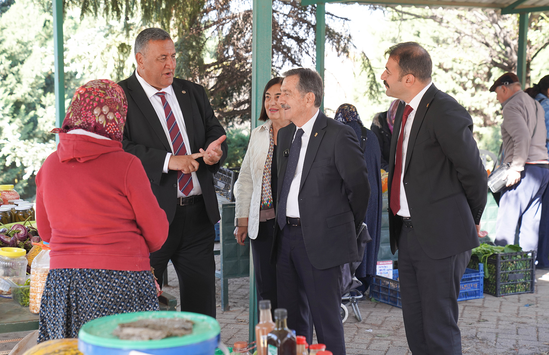 Söyleşi öncesinde ise Tepebaşı Belediye Başkanı Dt. Ahmet Ataç, CHP Niğde Milletvekili Ömer Fethi Gürer ile birlikte Tepebaşı Belediyesi Kadın Üretici Ürün Satış Noktası’nı ziyaret etti. Batıkent Mahallesi Hasan Ali Yücel Belde Evi bahçesinde kırsal mahalle sakini kadın üreticiler ile bir araya gelen Başkan Ataç ve Milletvekili Gürer, kadınları üretime verdikleri katkılardan dolayı kutladı.