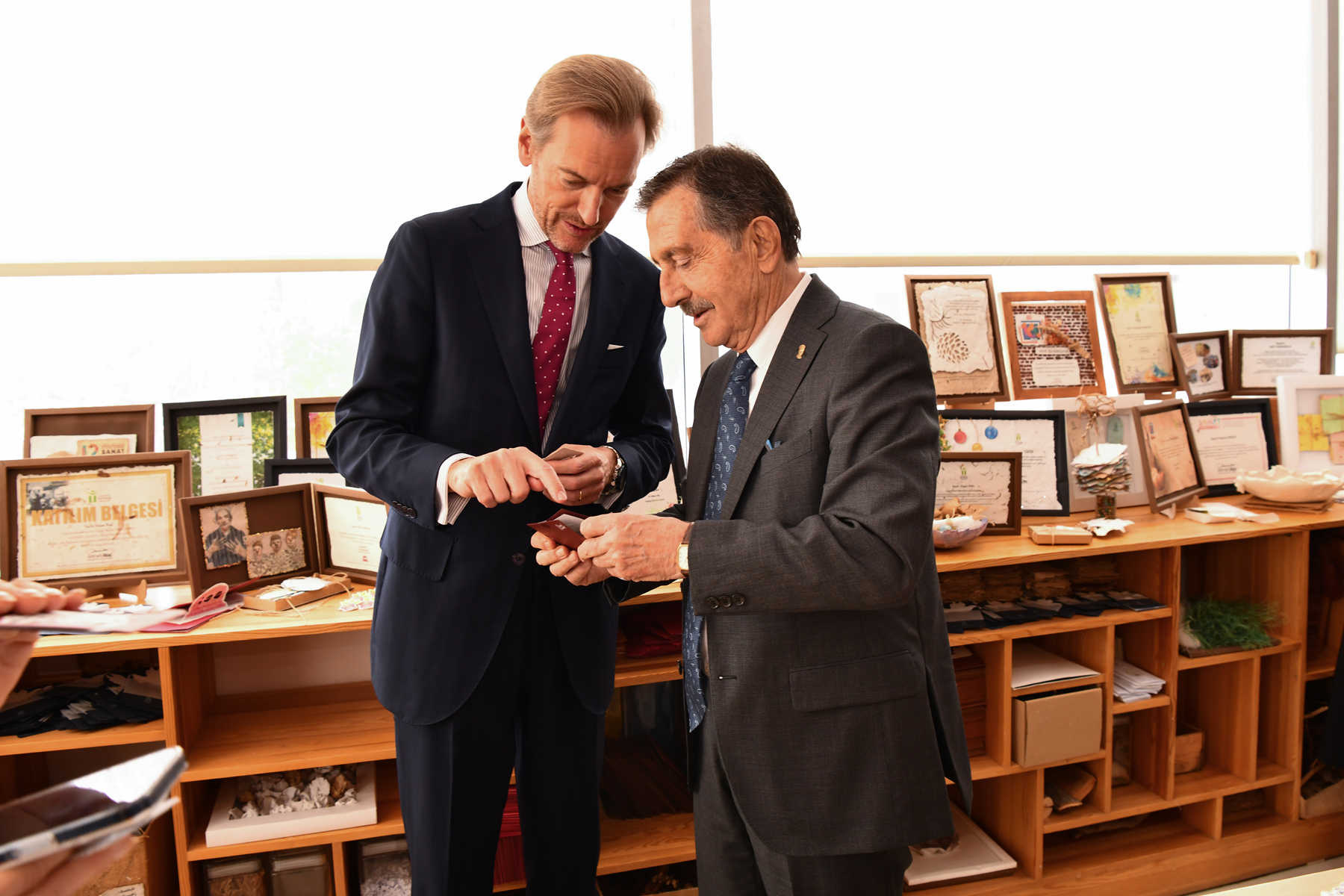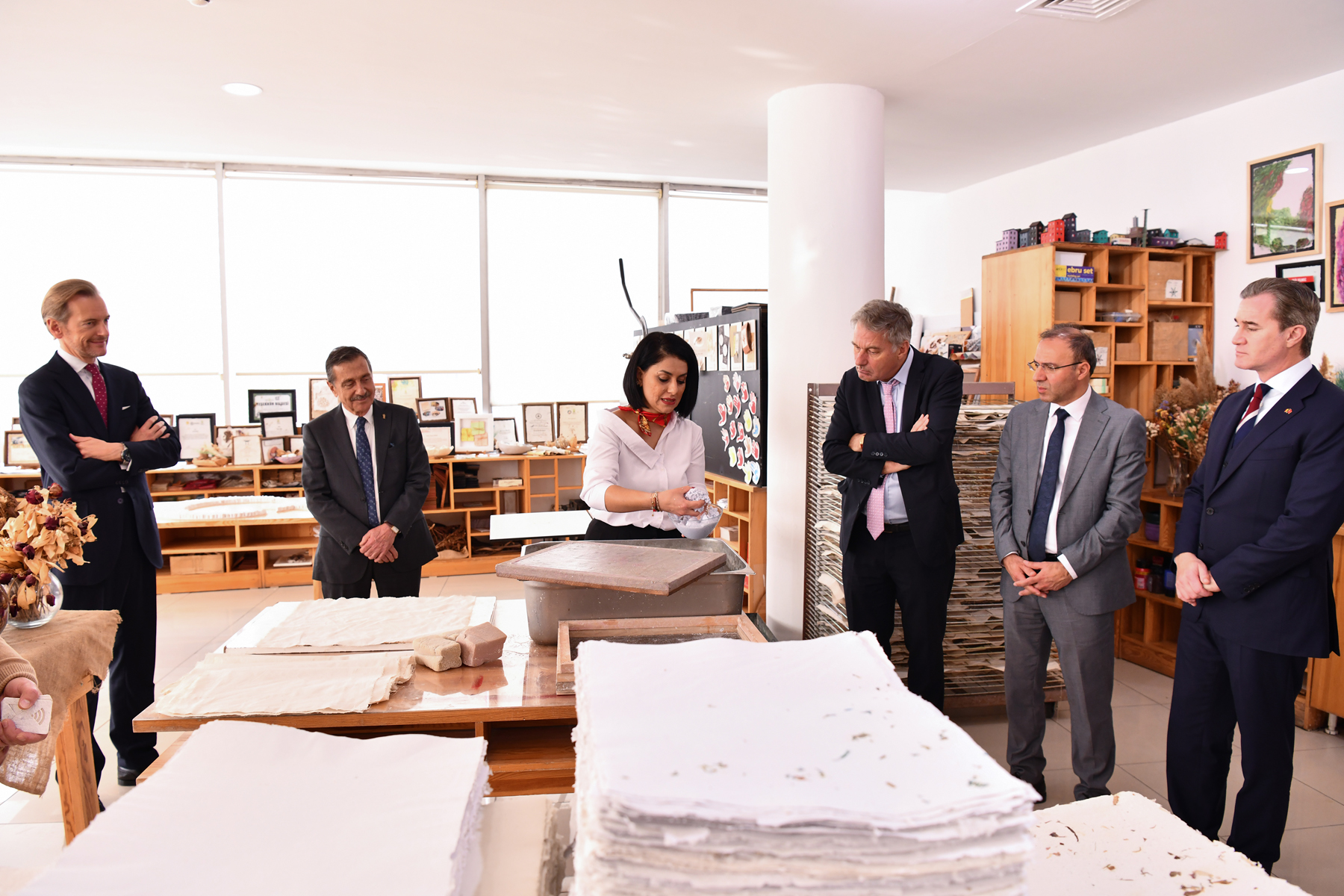 Ziyaret sonunda Başkan Ataç Büyükelçi Vende ve beraberindeki heyet, hizmet binası içerisinde yer alan pişmiş toprak sempozyumu eserlerini ve Kağıt Geri Dönüşüm Atölyesini gezdi.