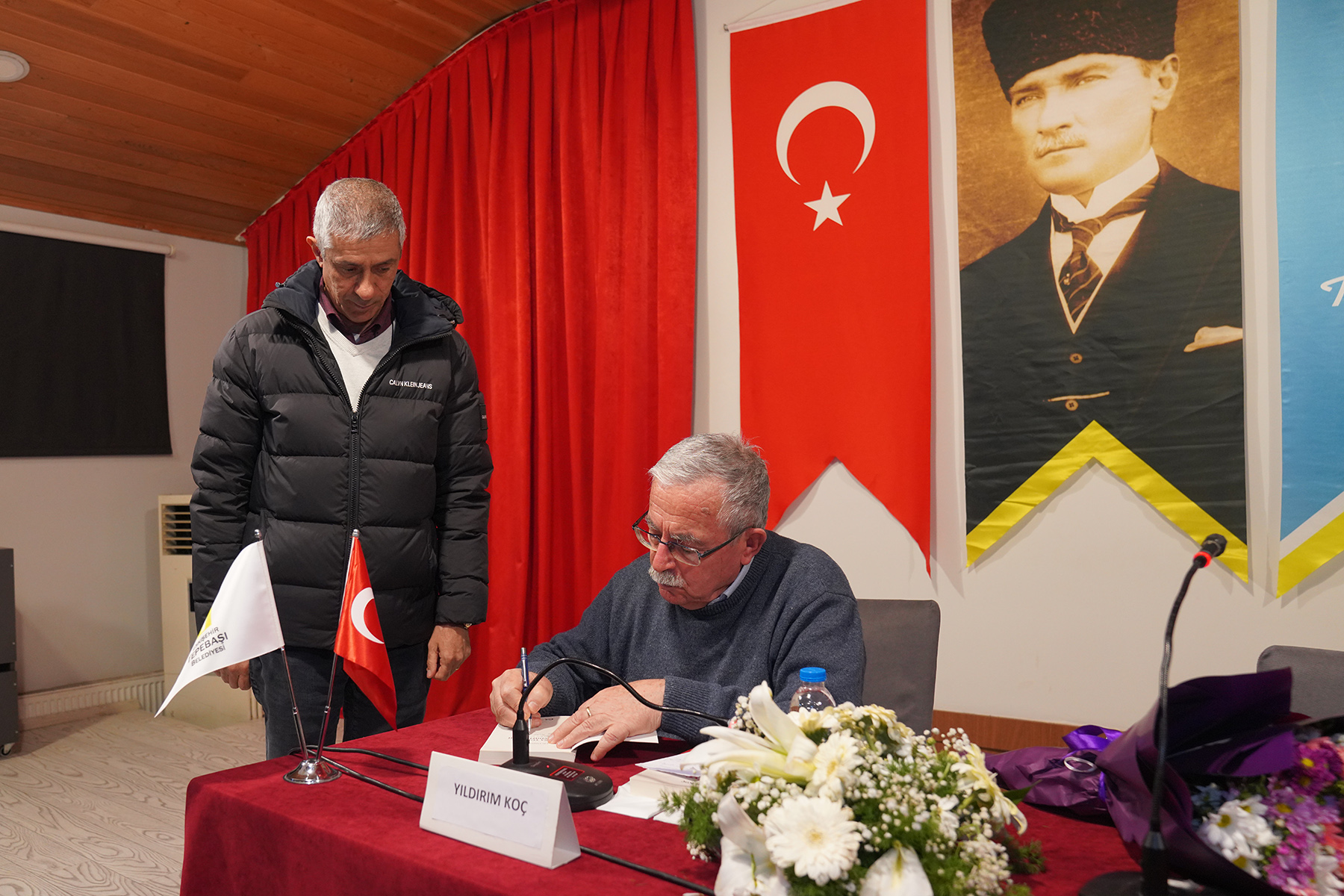 Koç, söyleşinin ardından okuyucuları için kitaplarını imzaladı.
