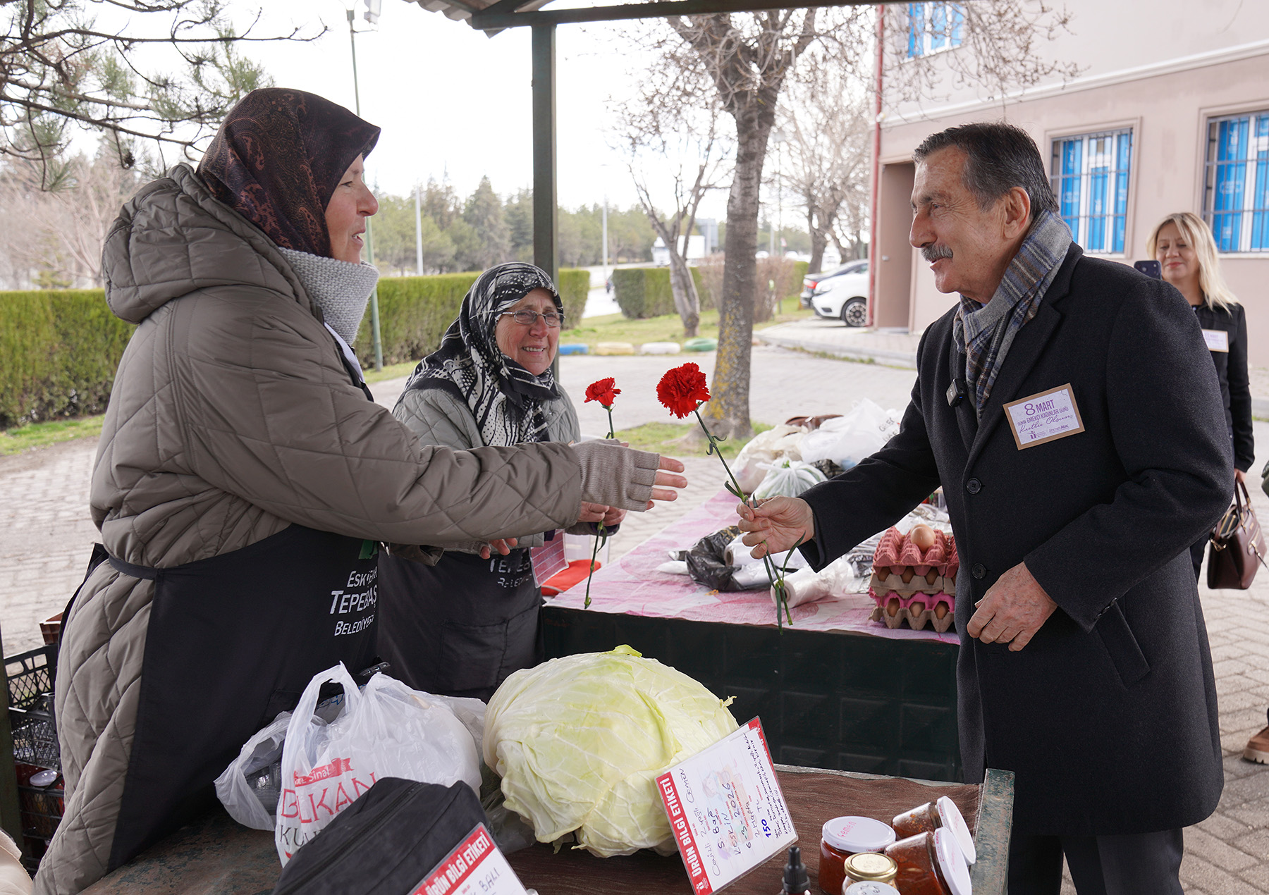 Tepebaşı Belediye Başkanı Dt. Ahmet Ataç, Tepebaşı Belediyesi Kadın Üretici Ürün Satış Noktası projesine katılan kırsal mahalle sakini kadınları ziyaret ederek, 8 Mart Dünya Kadınlar Günü’nü kutladı.