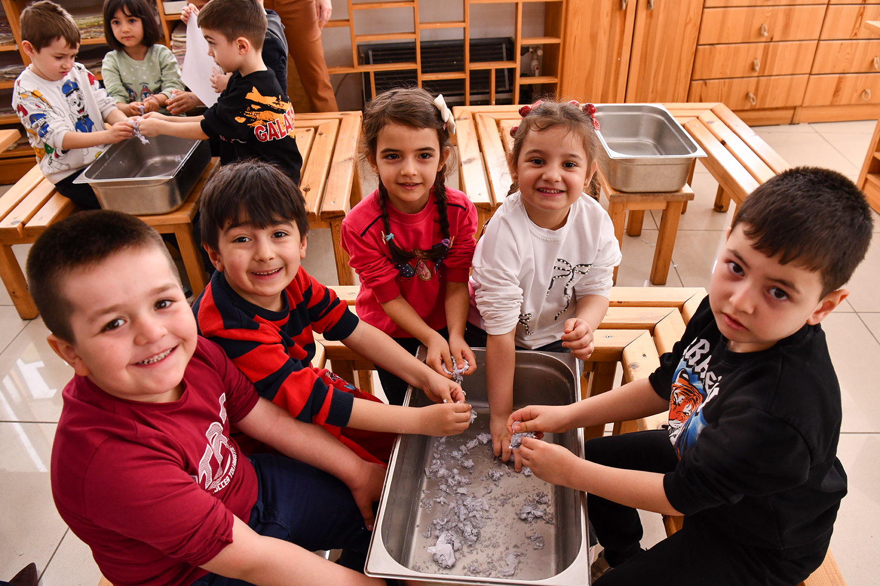 Geri Dönüşüm Atölyesi’nde uygulanan; çevre sorunlarının tüketim ve insan etkileriyle ilgisi ve çözüm önerilerini içeren bilinçlendirme programına katılan çocuklar, oyunlar ve görsel materyallerle doğayı korumanın yollarını eğlenceli bir şekilde öğreniyor. Düzenlenen 60 atölyeye 27 okuldan gelen bin 333 öğrenci, atık kağıtların geri dönüşüm sürecini uygulamalı olarak öğrenerek birer çevre dostu olarak merkezden ayrıldı. Öğrenciler ayrıca evlerinde de atık ayırmak konusunda özenli olup, çevrelerini de bu konuda teşvik edeceklerini belirtiyor.