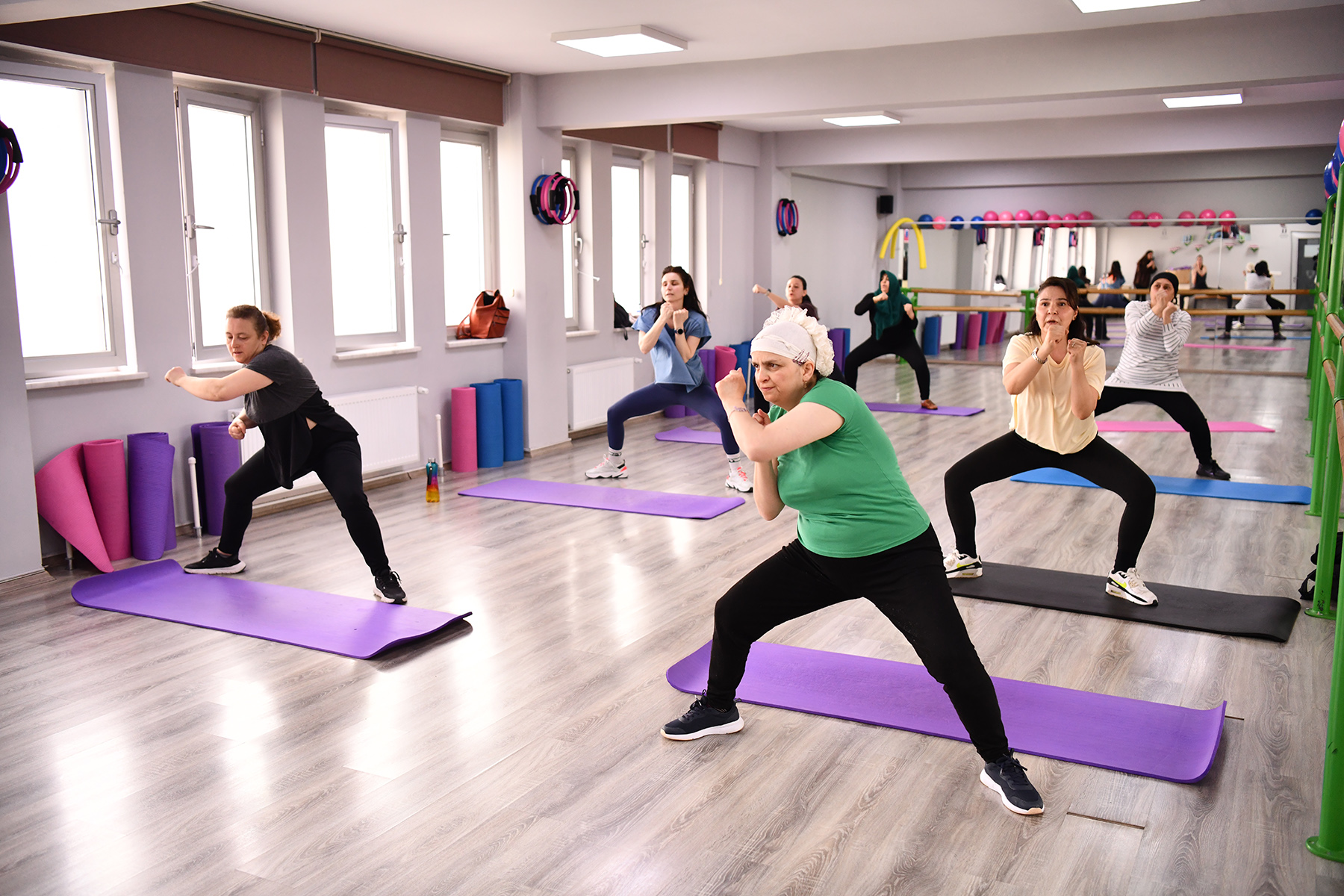 Tepebaşı Belediyesi Yunus Emre Spor Tesisleri yetişkin kursları yoğun katılımla devam ediyor. Fonksiyonel antrenman programına katılan kadınlar, keyifli vakit geçirmenin yanı sıra spor yapıyorlar.