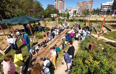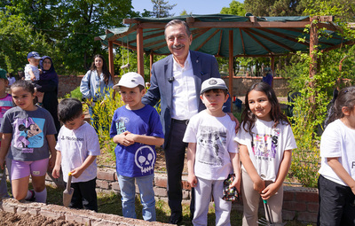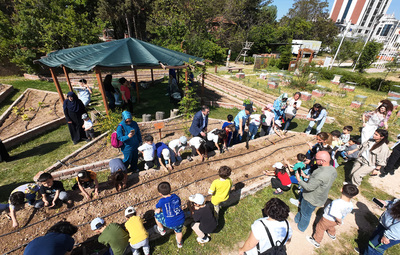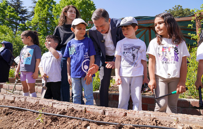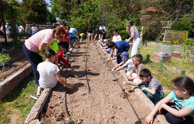 Dünya Çevre Günü etkinlikleri kapsamında Tepebaşı Belediyesi ve Sakin Okul Derneği işbirliğinde Yeryüzü Ekoloji Okulu’nda gerçekleştirilen fide dikim etkinliğinde, Ticaret Borsası İlkokulu 1, 2, 3 ve 4. sınıflarından toplam 100 çocuk, Tepebaşı Belediye Başkanı Dt. Ahmet Ataç ile birlikte domates, biber ve salatalık fidelerini toprakla buluşturdu. Fidelerin büyümelerine tanıklık edecek olan çocuklar, daha sonra ürettikleri bu sebzeleri sofralarına taşıyacaklar.
