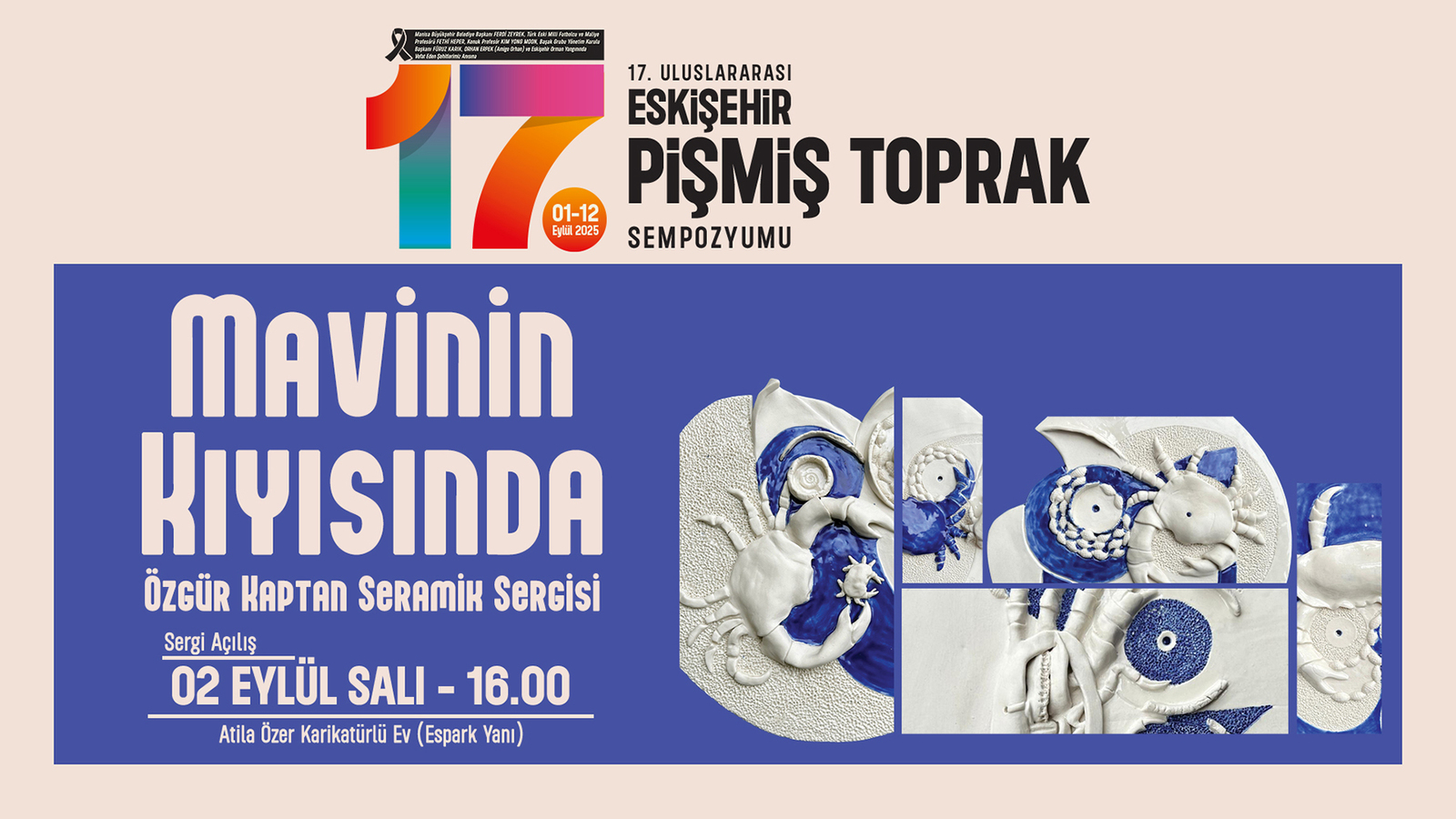 Sempozyum sanatçısı Özgür Kaptan tarafından hazırlanan “Mavinin Kıyısında” isimli seramik sergisi de sanatseverlerin beğenisine sunulacak. Serginin açılışı 2 Eylül Salı günü saat 16.00’da Atila Özer Karikatürlü Ev’de gerçekleşecek.