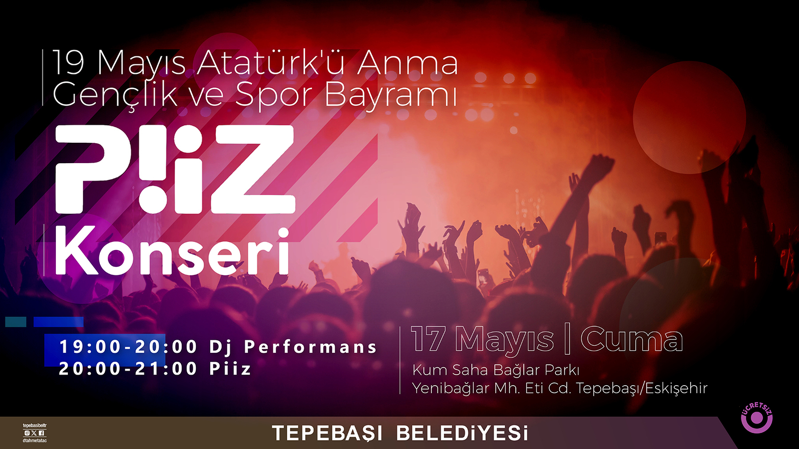 Tepebaşı Belediyesi’nin 19 Mayıs Atatürk’ü Anma Gençlik ve Spor Bayramı dolayısıyla düzenlediği konserde sevilen müzik grubu Piiz, Eskişehirlilere bayram coşkusunu yaşatacak.