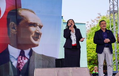 Festivalin açılış konuşmasını gerçekleştiren Başkan Ataç, “Ne kadar güzel bir manzara. Hava güzel, siz güzelsiniz daha ne olsun! Bugün çok önemli. Kurtuluş meşalesinin yandığı gün. Bu meşalenin yanmasında siz gençlerimizin büyük emeği var. Mustafa Kemal Atatürk olmak kolay değil. Karşısında emperyalizm güçleri vardı. Önce O dur dedi, sonra halk arkasında durdu. Ancak o yapardı. O tarihte, 19 Mayıs’ı gençlere, 23 Nisan’ı çocuklara emanet etmek ancak Mustafa Kemal Atatürk’ün vizyonudur. Bugün aydınlık bir gün. Çocuklarımızla gençlerimizle, büyüklerimizle hep birlikte eğleneceğiz. Laik cumhuriyet, devrimci bir şehir! Bayramımız kutlu olsun.” ifadelerini kullandı.