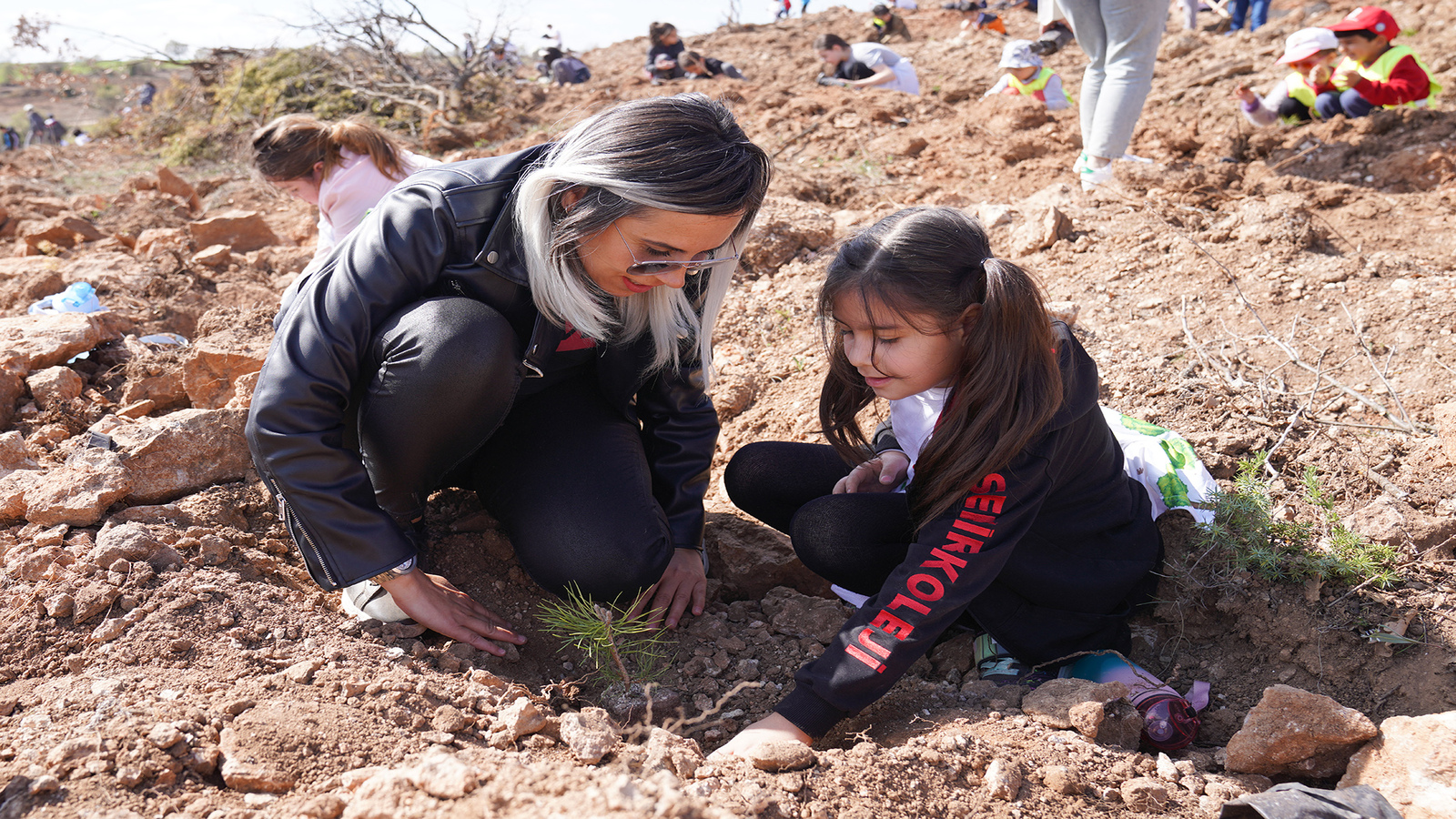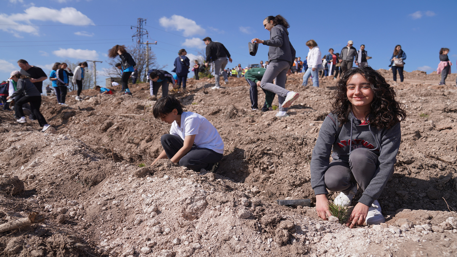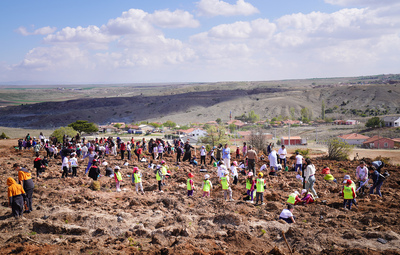 Tepebaşı Belediyesi’nin de paydaşı olduğu Eko Okullar Projesi’ni uygulayan okullardan 500 kişilik öğrenci ve öğretmen Karaalan Mahallesi’nde 3 bin fidanı toprakla buluşturdu.