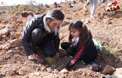 Serra Akkemik, “Bugün burada çok eğlendim. Fidan diktik. Fidanlar büyünce ağaç olacak. Ağaçlar da bize oksijen verecek. Burası şuanda taş toprak ama ağaçlar büyünce çimenler gelemeye başlayacak” diye konuştu.
