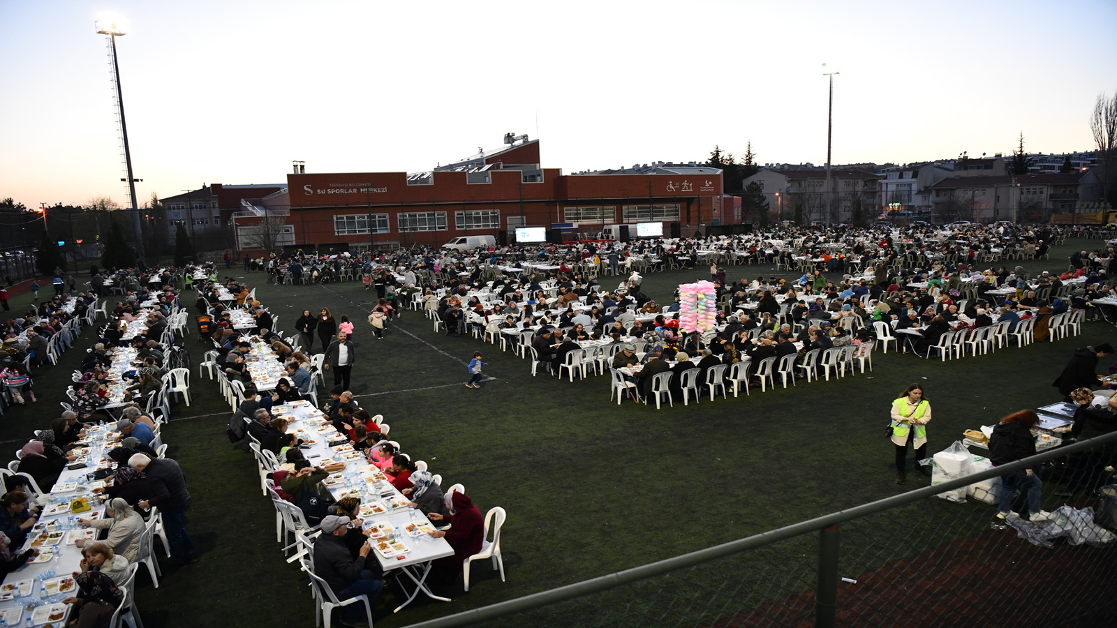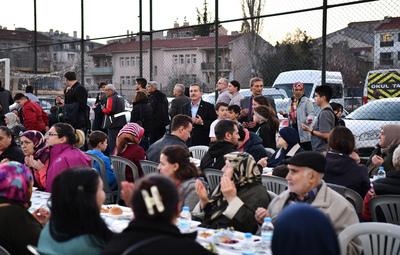 Ertuğrulgazi Mahallesi’nde yer alan Behiç Erkin Spor Kompleksinde düzenlenen sokak iftarında 6 bin vatandaş paylaşmanın ve bir arada oruç açmanın mutluluğunu yaşadı. Tepebaşı Belediye Başkanı Dt. Ahmet Ataç da iftar programına katılan vatandaşlar ile selamlaşarak sohbet etti.