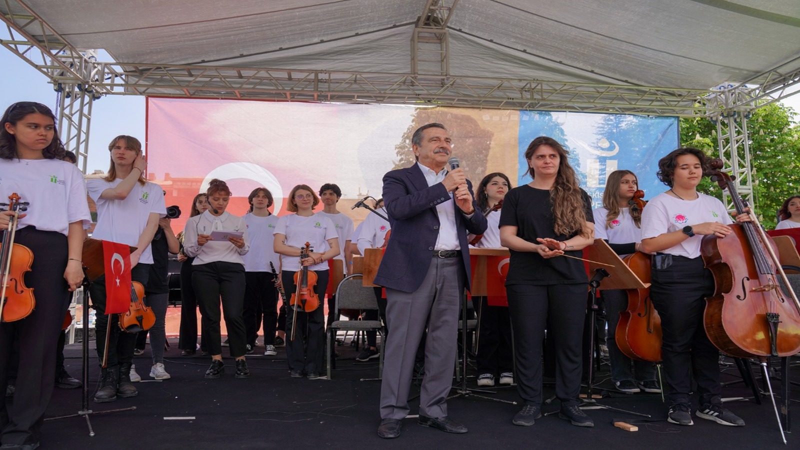Vecihi Hürkuş Havacılık ve Teknoloji Parkı’nda gerçekleşen 23 Nisan Ulusal Egemenlik ve Çocuk Bayramı şenliğine Tepebaşı Belediye Başkanı Dt. Ahmet Ataç’ın yanı sıra CHP Eskişehir Milletvekili Jale Nur Süllü, CHP İl Başkanı Talat Yalaz, meclis üyeleri ve çok sayıda çocuk ile velileri katıldı. Şenlik, İki Elin Sesi Var Çocuk ve Gençlik Senfoni Orkestrası’nın konseri ile başladı. Orkestra şefliğini Simay Pala’nın üstlendiği konserde yer alan 35 çocuk, Can –Can, Radetzky March, İzmir Marşı, 10. Yıl Marşı, Bugün 23 Nisan adlı eserlerini seslendirdi. Orkestra, katılımcılardan tam not aldı.