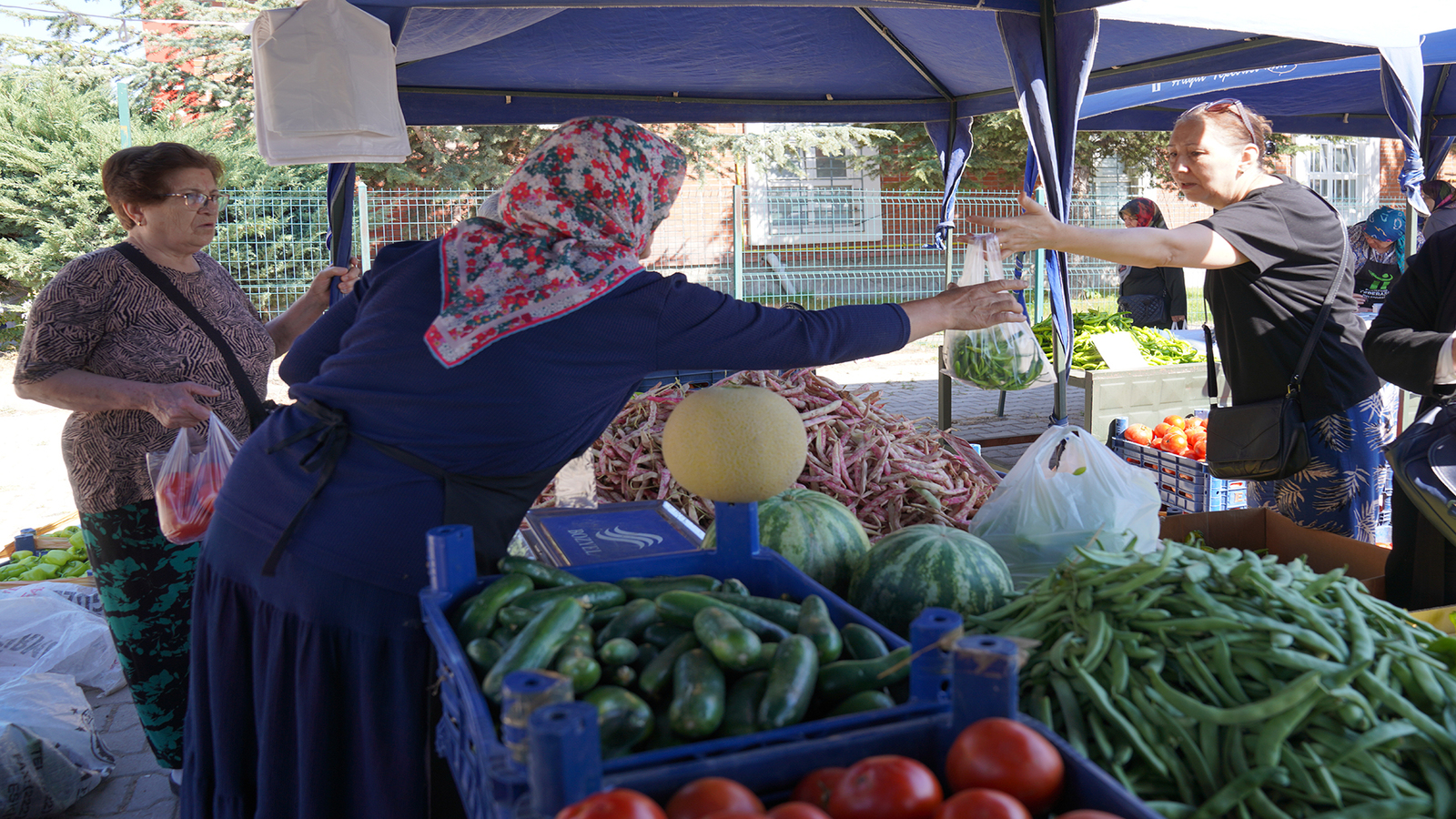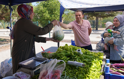 Kızılinler Mahallesi’nde üretim yapan Sevinç Serhan, “Yaklaşık 6 seneden beri satış noktasında yer alıyorum. Biber çeşitlerimiz, domates gibi her türlü ürünümüz var. Ben genellikle kavun, karpuz üretiyorum. Başta bağrıbütün olmak üzere çeşitli kavunları yetiştiriyorum. Satış noktaları sayesinde ürünlerimiz değer gördü. Vatandaşlarımız da çok memnun. Bu sayede ev ekonomisine çok katkısı oluyor. Çok memnunuz” ifadelerini kullandı.