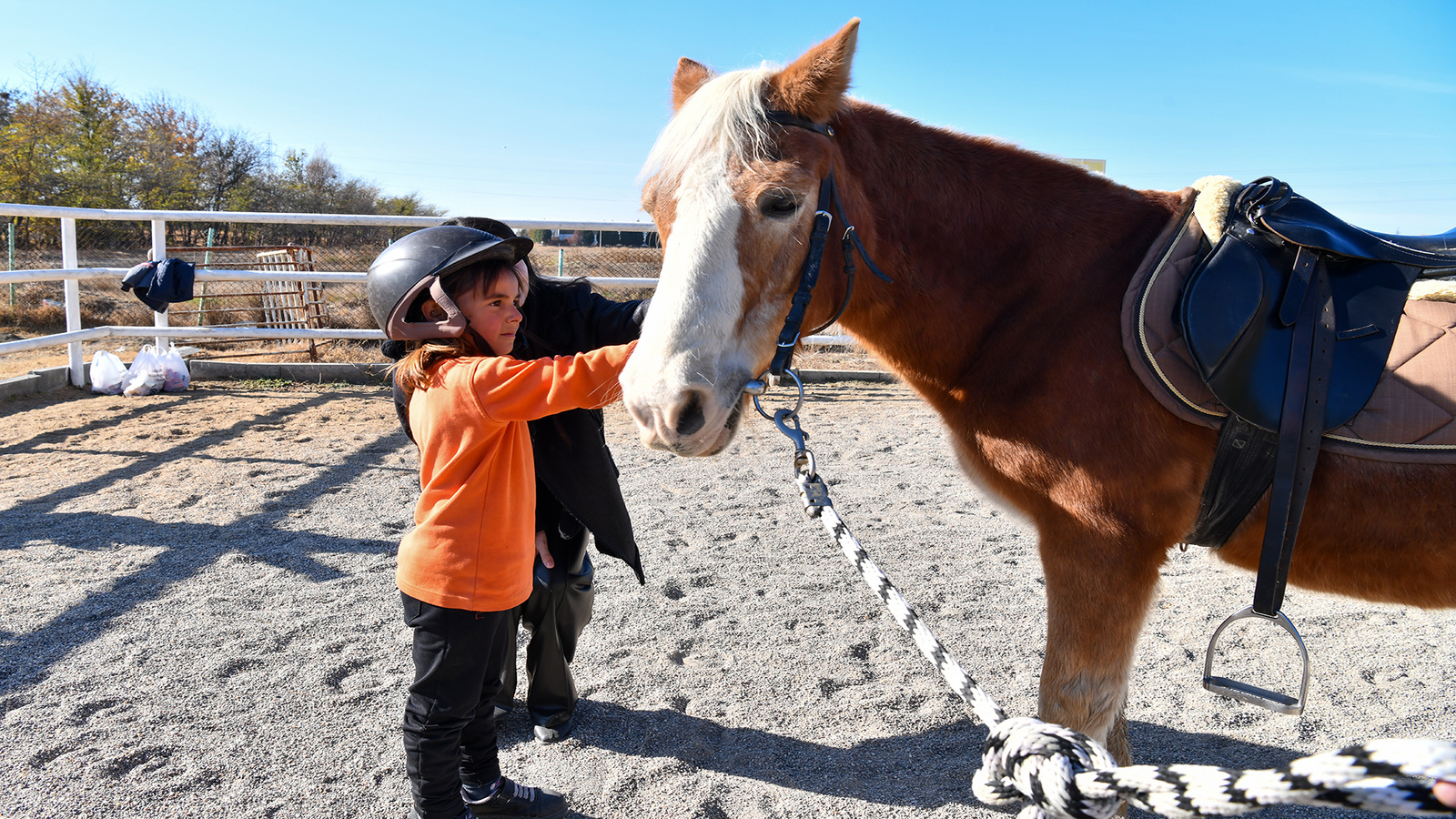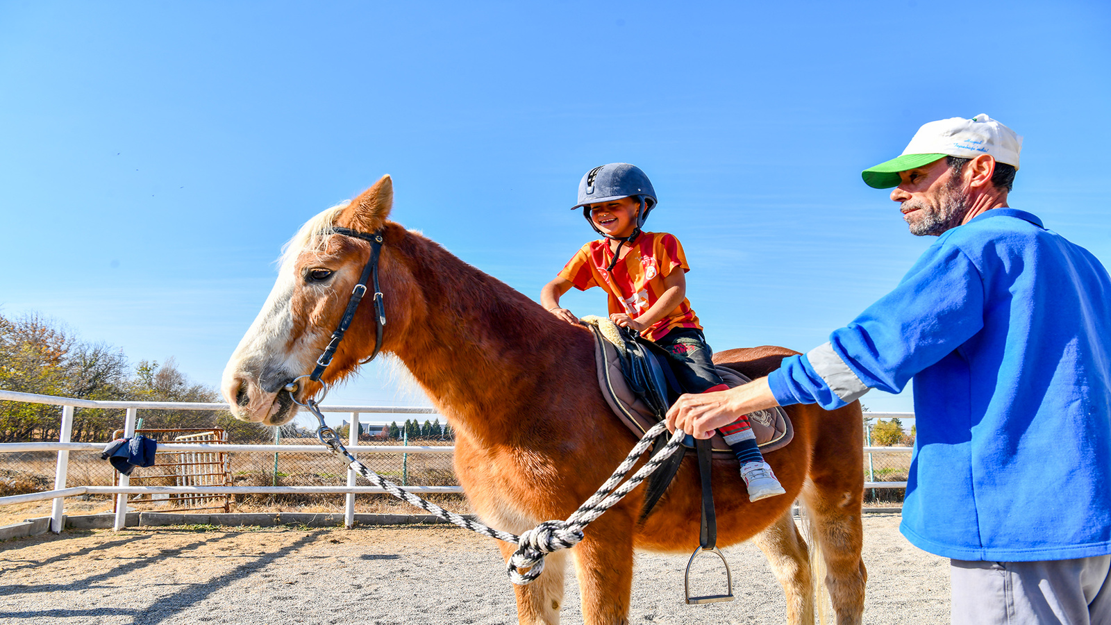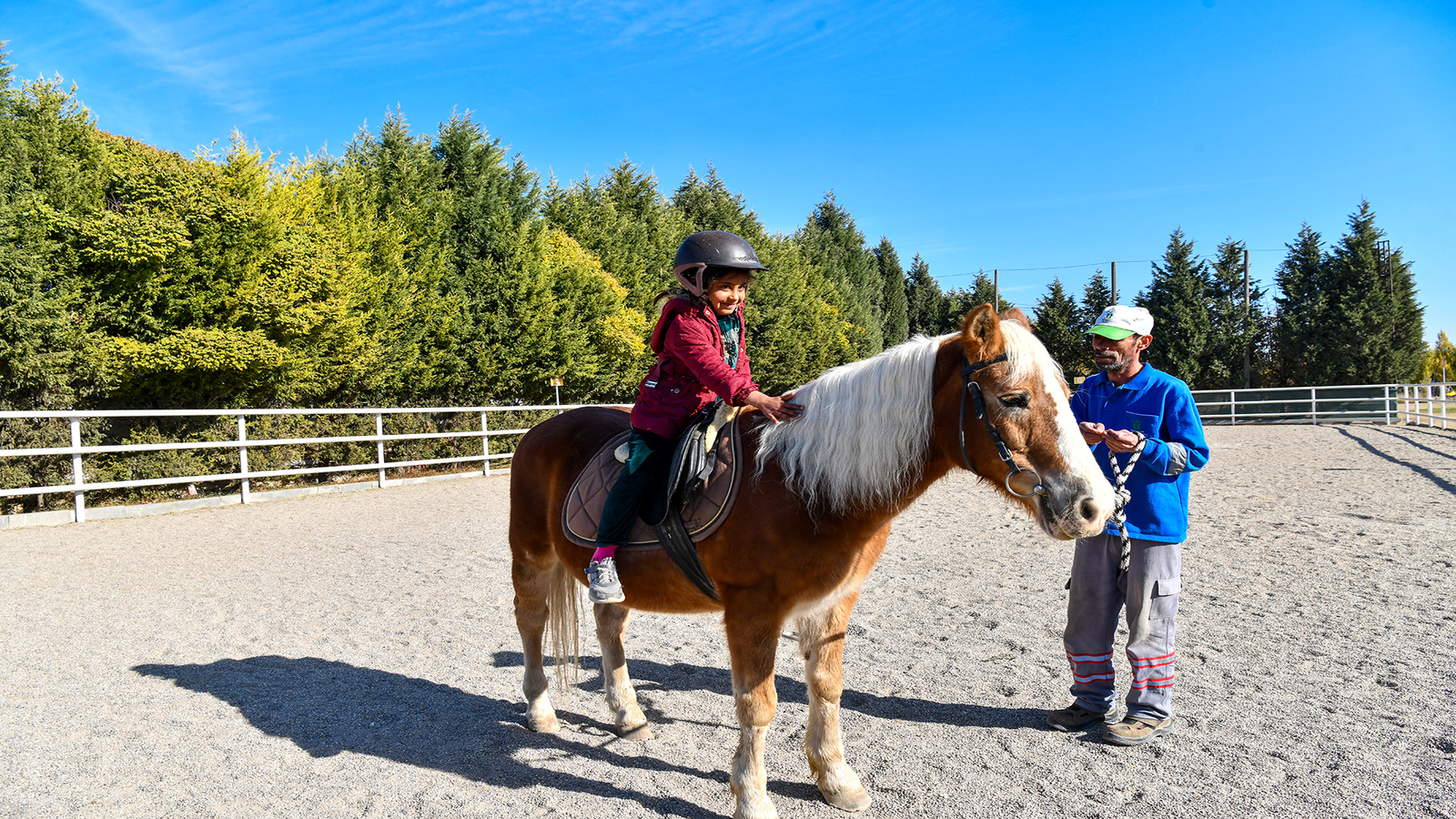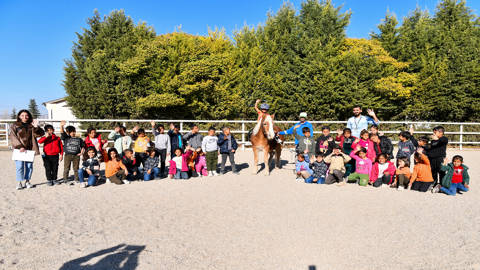 Çocuklar daha sonra merkezde oluşturulan özel alanda, uzman eğitmenler gözetiminde ata binmenin ayrıcalığını yaşadı.