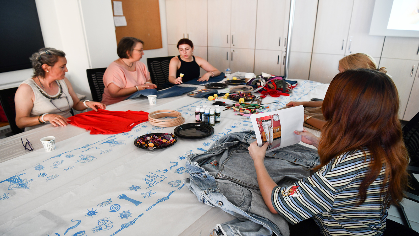 Atölyenin ikinci oturumda ise Kantarcı, katılımcıların kullanılmayan tekstil ürünlerini ileri dönüşüm tekniğiyle yeni ürünlere dönüştürebilmenin yöntemlerini anlatarak sürdürülebilir tekstil ve yavaş moda ile ilgili bilgi ve deneyimlerini paylaştı. Yanlarında kullanmadıkları bir tekstil ürünü getiren katılımcılar ise öğrendikleri yöntemlerle yeni ürün üretmenin mutluluğunu yaşadı.