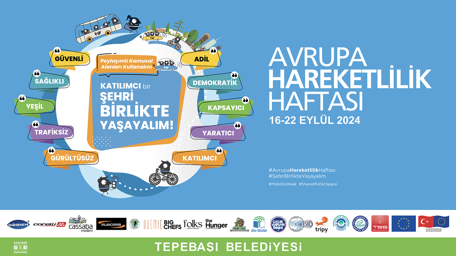 Bu yıl teması ‘Paylaşımlı Kamusal Alanlar’ olarak belirlenen Avrupa Hareketlilik Haftasında daha fazla sosyal eşitlik, yol güvenliği, daha az gürültü, hava kirliliği ve daha iyi bir yaşam kalitesi ile kentlerdeki vatandaşların beklentilerinin karşılanması amaçlanıyor.