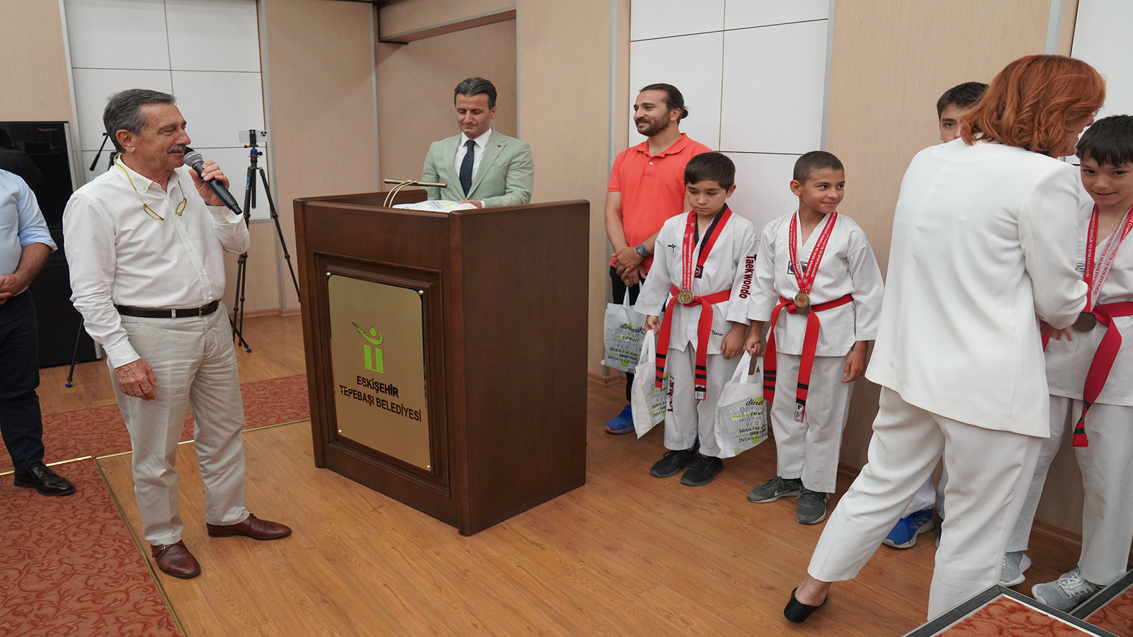 Yunus Emre Spor Kompleksinde Tekvando branşında eğitim alarak Türkiye genelinde gerçekleşen müsabakalarda dereceye giren sporcular, Tepebaşı Belediyesi Temmuz ayı son toplantısında Tepebaşı Belediye Başkanı Dt. Ahmet Ataç ve meclis üyeleri ile bir araya geldi. Sporcuları elde ettikleri başarılardan dolayı tebrik eden Başkan Ataç, “Hepinizi tek tek kutluyorum. Bizim için önemli olan gençlerimizi, çocuklarımızı bu günlere getirebilmek. 1999 yılında seçildiğimde bırakın tesisi bir tane bile toprak saha yoktu. Bugün tesislerimizde çocuklarımızı spora alıştırıyoruz ve onları kazanıyoruz. Bu tür müsabakalarda da bizleri temsil ediyorlar. Bu gurur verici bir şey. Kendilerini tebrik ediyor, yanaklarından öpüyorum” dedi.