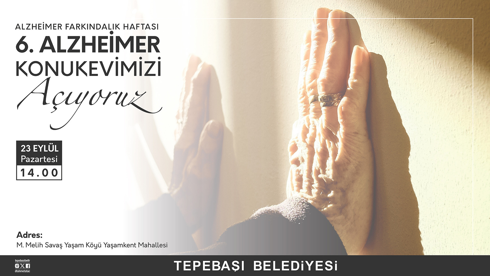 Tepebaşı Belediye Başkanı Dt. Ahmet Ataç, 21 Eylül Dünya Alzheimer Günü dolayısıyla yayımladığı mesajında Alzheimer’ın çağımızın hastalığı olduğunu belirterek, “Melih Savaş Yaşam Köyü’nde hizmet veren Alzheimer Konukevimizle hastaların ve yakınlarının yanında olmaya devam edeceğiz” dedi.
