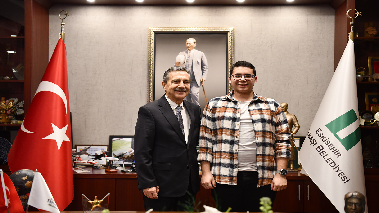 Tepebaşı Belediye Başkanı Dt. Ahmet Ataç, kendisiyle tanışmak isteyen 17 yaşındaki Arda Musa Uç ile bir araya geldi. Başkan Ataç, ilk kez oy kullanacak gençlere de seslenerek “Tek bir şeye taraf olsunlar, Atatürk gençliği olsunlar, Atatürk’ün yolundan ayrılmasınlar” dedi.