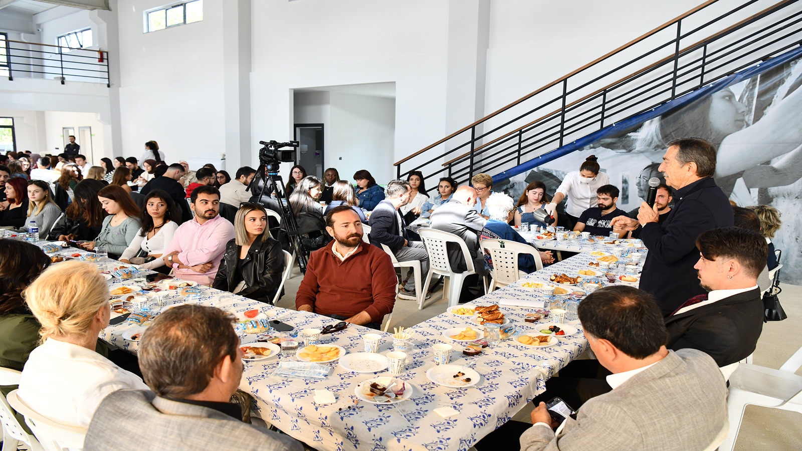 Kahvaltıda bulunan 160 öğrenciye hitap eden Başkan Ataç, bulunulan mekanın bu yıl içerisinde yapıldığını ve 12 ay boyunca etkinliklere ev sahipliği yapacağını belirterek “Mimarlık demek sanatın bir kolu demek. Sizin burada bulunmanız son derece kıymetli. Bugün bu kadar gençle bir arada olmaktan çok mutlu oldum. Belediye başkanı herkese dokunmalıdır. Tepebaşı Belediyesi böyle bir hizmet içindedir. Biraz zaman geçsin neler yapıldığını göreceksiniz. Eskişehir’de ve ülkede ilkler yapan bir belediyeyiz. Siz öğrenciler için de 19 Mayıs ve 29 Ekim olmak üzere iki tane gençlik merkezimiz var. Bu iki merkezden de yararlanabilirsiniz. Ayrıca öğrencilerin bütçelerine bir nebze de olsa katkı sunabilmek için akşam yemeği desteğinde bulunuyoruz. Geçen yıl başladığımız bu uygulamadan yaklaşık 90 bin genç arkadaşımız faydalandı. Bu destekten faydalanabilirsiniz” dedi.