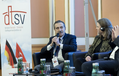 Türk-Alman Kardeş Kentler Federasyonu (DTSV) tarafından gerçekleştirilen etkinliğe Başkan Ataç’ın yanı sıra DTSV Başkanı Özcan Mutlu, İstanbul Büyükşehir Belediyesi Dış İlişkiler Dairesi Başkanı Barbaros Büyüksağnak, Muğla Büyükşehir Belediye Başkanı Ahmet Aras, Şişli Belediye Başkanı Resul Emrah Şahan, Berlin Eyalet Başkanı Kai Wegner, Friedrichshain-Kreuzberg Belediye Başkanı Clara Hermann, Spandau Belediye Başkanı Frank Bewig ve Tepebaşı’nın kardeş şehri Treptow-Köpenick Belediye Başkanı Oliver Igel katıldı.
