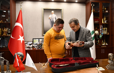 Başkan Ataç, Emre ve babası Sebahattin Çınar’ı makamında ağırladı. Ziyarette keman çalma hayali olduğunu ifade eden Çınar, “Keman çalmayı çok istiyorum. Kemanım olduğunda kursa gidip öğrenmek istiyorum” dedi. Çınar’ın hayaline sessiz kalamayan Başkan Ataç ise kendisine keman hediye ederek Çınar’ın mutluluğuna ortak oldu. Kemanına kavuşan Çınar ise ilk iş kursa yazılacağını belirterek Başkan Ataç’a teşekkür etti.