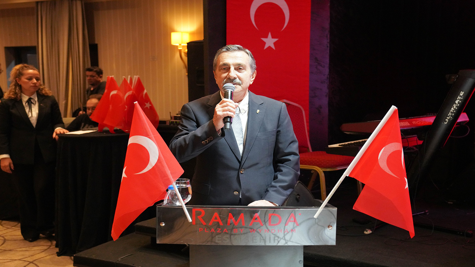 CHP Eskişehir Milletvekili Jale Nur Süllü: “Böylesi bir gecede sizlerle birlikte olmaktan dolayı büyük bir mutluluk duyuyorum. Tepebaşı Belediye Başkanımız sevgili ağabeyim Ahmet Ataç’a da çok teşekkür ediyorum. Her zaman sizleri bir araya getiriyor, bizlerle buluşturuyor. Gerçekten başkanımızın bu emekleri çok büyük. Aynı zamanda herkesin bizim için çok değerli olan 29 Ekim Cumhuriyet Bayramı’nı kutluyorum. Ülkemizin çok güzel günlerinde hep birlikte inşallah daha nice böyle güzel birlikteliklere imza atmayı diliyorum.” şeklinde konuştu.
