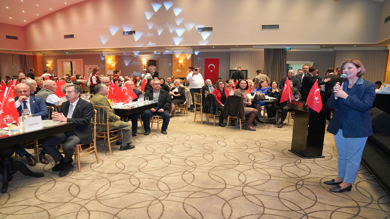 Konuşmaların ardından, sahneye çıkan sanatçı Özkan Uçar, Atatürk’ün sevdiği türküleri seslendirerek muhtarlara unutulmaz bir gece yaşattı.