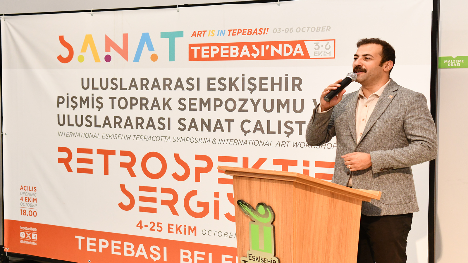 “Sanat Tepebaşı’nda” etkinliği kapsamında hazırlanan Uluslararası Pişmiş Toprak Sempozyumu ve Uluslararası Sanat Çalıştayı Retrospektif Sergisinin açılışı Vecihi Hürkuş Havacılık ve Teknoloji Parkı’nda yoğun katılımla gerçekleştirildi. Sergi açılışına Tepebaşı Dt. Ahmet Ataç’ın yanı sıra CHP İl Başkanı Talat Yalaz, Anadolu Üniversitesi eski Rektörü Engin Ataç, meclis üyeleri, sanatçılar ve sanatseverler katıldı.
