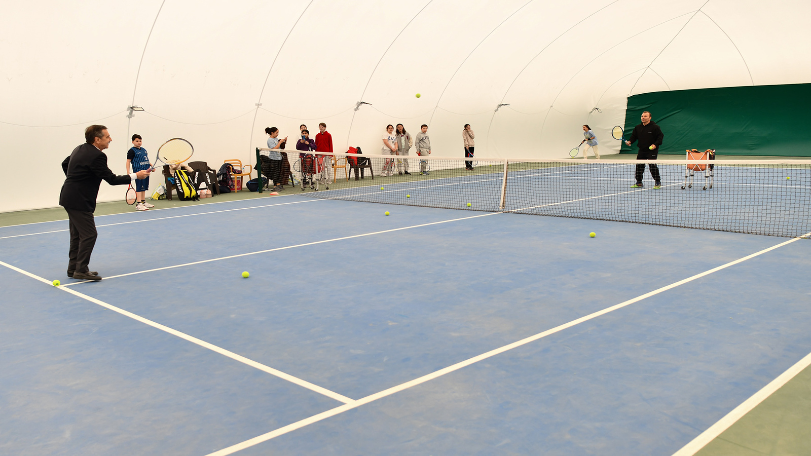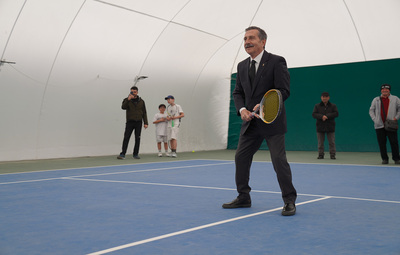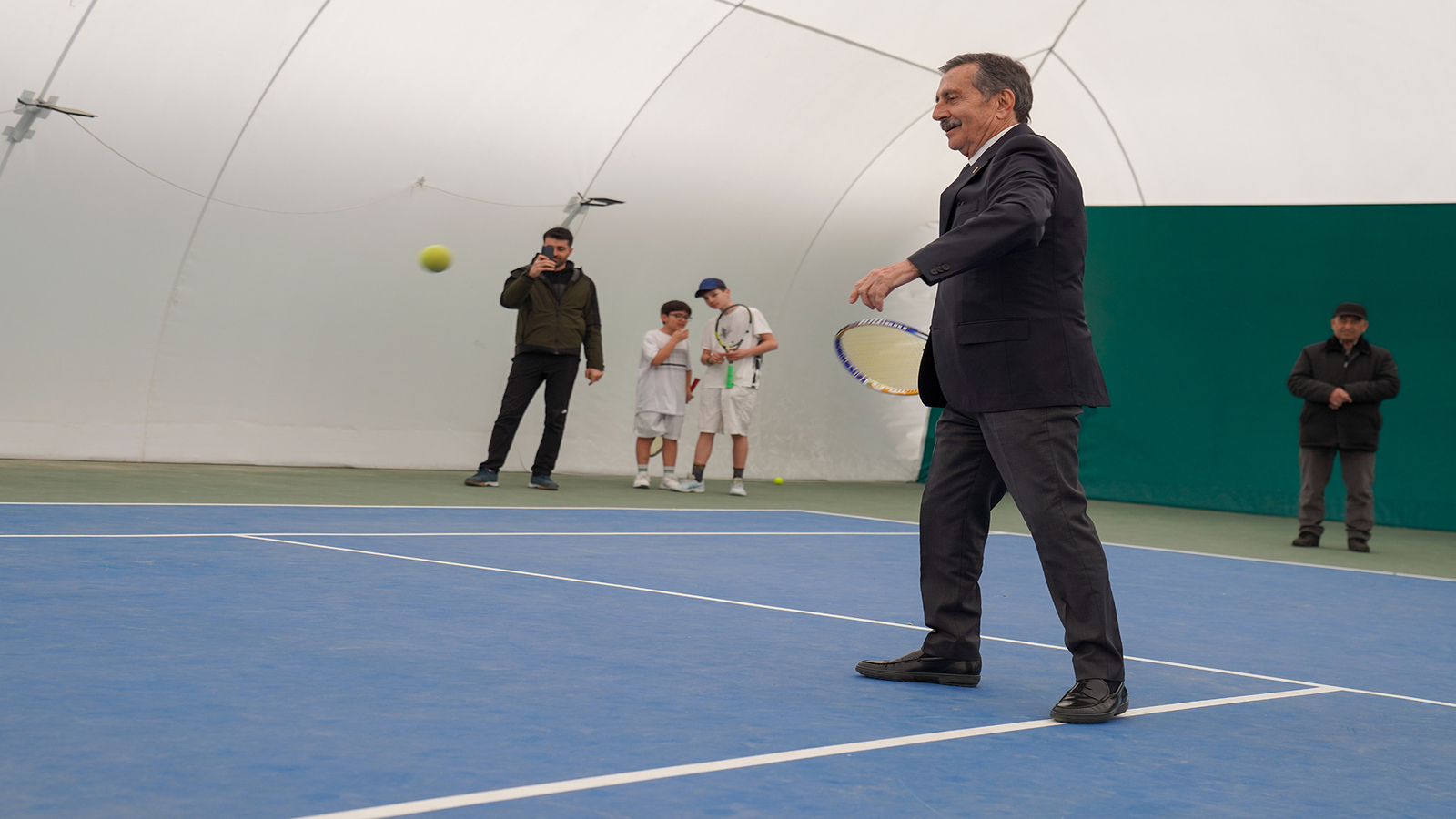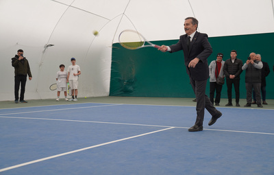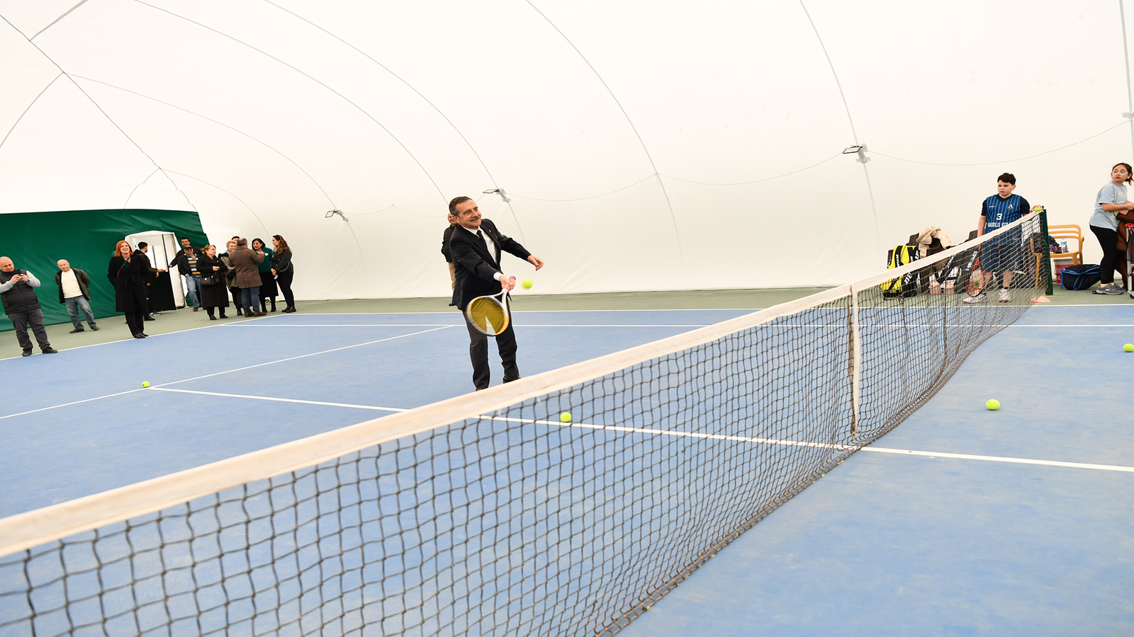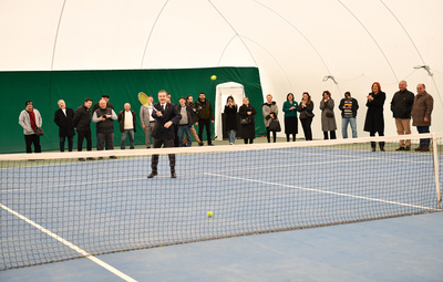 Tesiste incelemelerde bulunan Başkan Ataç, tenis oynamayı da ihmal etmedi.