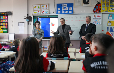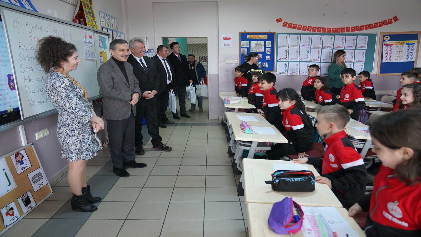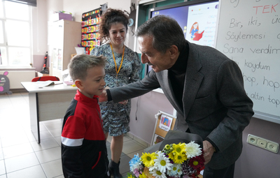 Tepebaşı Belediye Başkanı Dt. Ahmet Ataç, kendisine yeni yıl tebrik kartı gönderen 1. sınıf öğrencisi Barlas Efe Çimen ve arkadaşlarını okullarında ziyaret etti. Başkan Ataç, “Sizlerin parıldayan gözlerinize baktıkça geleceğe dair umudum artıyor” dedi.