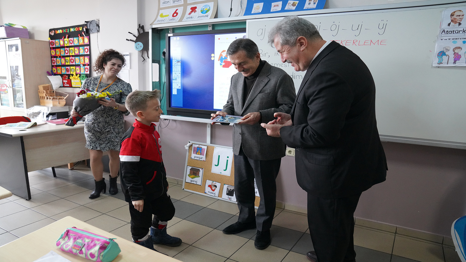 Öğrenciler ayrıca Başkan Ataç’a çiçek takdim ederek ziyareti için teşekkürlerini iletti.