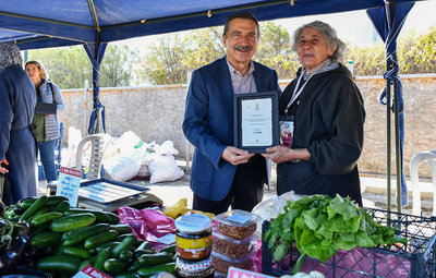 Uluönder Mahallesi Fevzi Çakmak Caddesi’nde kırsal mahalle sakini kadın üreticiler ile bir araya gelen Başkan Ataç, kadınları üretime verdikleri katkılardan dolayı kutlayarak plaket takdim etti. Üretici kadınların yanı sıra alanda alışveriş yapan vatandaşlar da Başkan Ataç’a üretime ve kadınlara sağladığı desteklerden ötürü teşekkür etti.