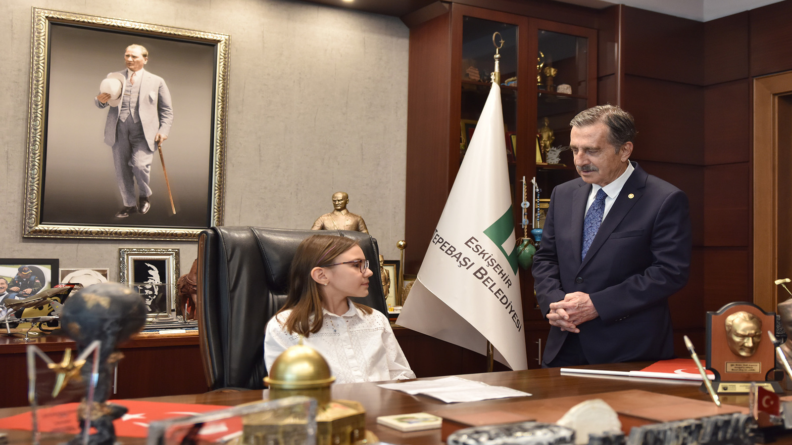 Tepebaşı Belediye Başkanı Dt. Ahmet Ataç’ın makamında, 23 Nisan Ulusal Egemenlik ve Çocuk Bayramı dolayısıyla özel bir buluşma gerçekleşti.