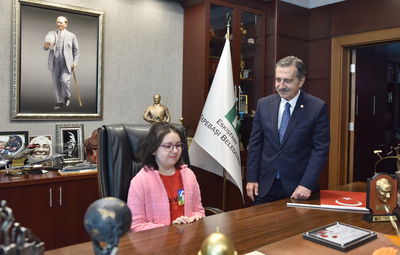 Tepebaşı Belediye Başkanı Dt. Ahmet Ataç makamını 23 Nisan Ulusal Egemenlik ve Çocuk Bayramı dolayısıyla lösemiyi yenen Nilda, Yunus Emre ve Atayurt İlkokulu öğrencisi Bade Tandoğan’a emanet etti. Başkan Ataç, ayrıca Bilnet Okulu’ndan 4. Sınıf 18 öğrenciyi de makamında ağırlayarak sorularını yanıtladı.