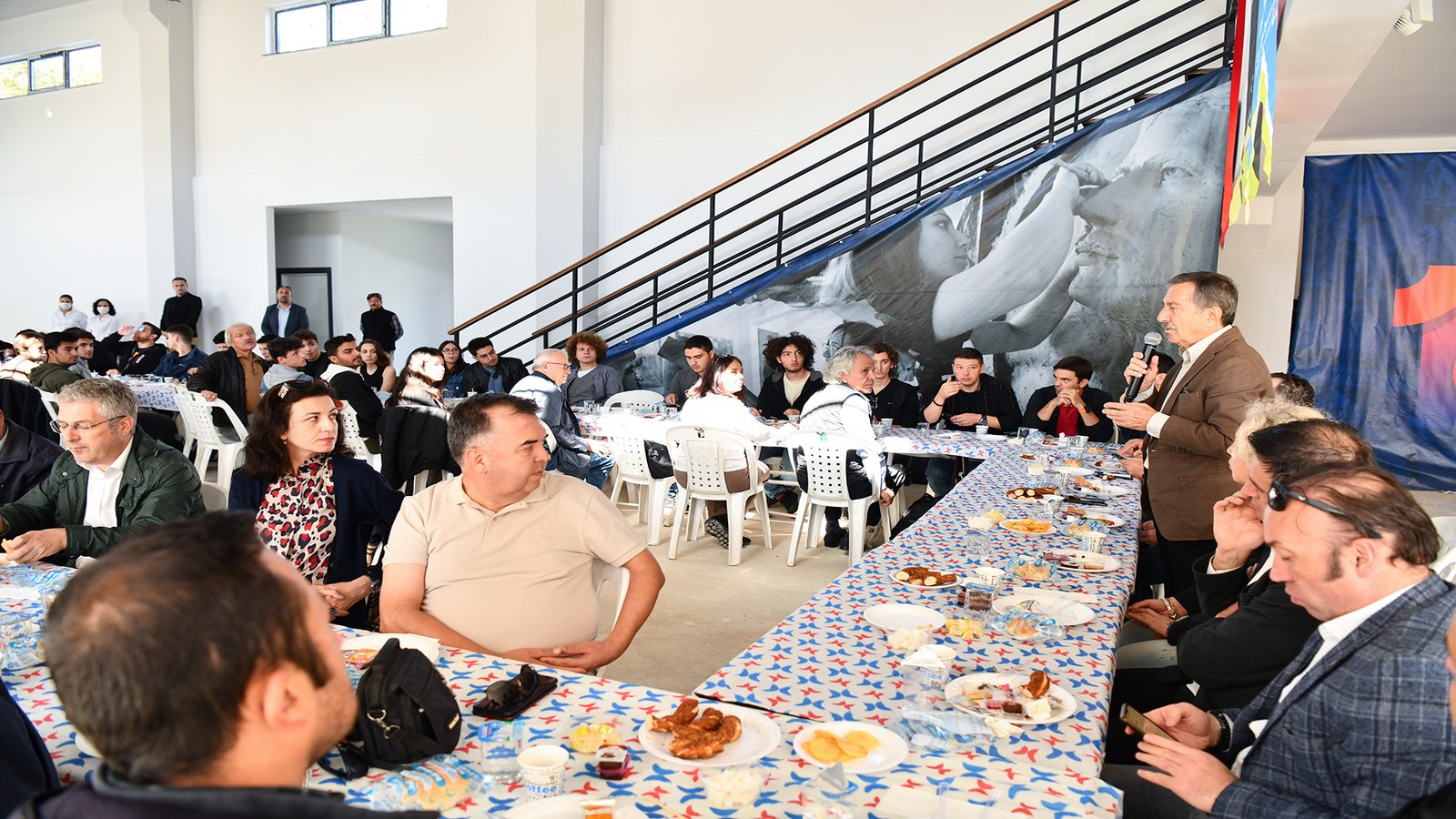 Kahvaltıda öğrencilere hitap eden Başkan Ataç, “Bu kadar gencin bir araya gelmesi çok önemli. Tepebaşı Belediyesi’nin bütün kurumlarla iş birliği içinde olması, özellikle de üniversitelerle iş birliği içinde olması bizim için çok önemli. Bizim bölgemiz genelde üniversite öğrencilerinin yoğun olduğu bölge. Üç mahallemizde yaklaşık 15 bine yakın üniversite öğrencisi var. Bu da Tepebaşı bölgesinin çevresini değiştiriyor. ESOGÜ’de okuyup Tepebaşı bölgesinde yaşayan öğrenci kardeşlerimiz de var. İki tane gençlik merkezimiz var. Belki gidenleriniz var. Üniversite Caddesinde 19 Mayıs Gençlik Merkezi ve Açıköğretim Fakültesi binasının arkasında 29 Ekim Gençlik Merkezimiz var. Buralar yıllardır üniversiteli gençlerimizle kaynaştığımız yerler. Eğer oralarla temasa geçerseniz bir takım güzel kurslar var. Eğitim alabileceğiniz branşlar var. Bu merkezler sınav dönemlerinde sabaha kadar açık ve sınavlar bitene kadar sizlerin hizmetinizde oluyor. Ayrıca 2022’de başladığımız üniversite gençlerine ücretsiz akşam yemeği programı var. Geçen yıl başladığımız bu uygulamadan yaklaşık 90 bin genç arkadaşımız faydalandı. Ayrıca sabah derse giden üniversiteli gençler için sıcak çorba ikramında da bulunuyoruz. Sabah okula giderken 19 Mayıs Gençlik Merkezi önünden hemen çorbalarını alıp zaman kaybetmeden okullarına devam edebiliyorlar. Onunla beraber ilkokullara sabah kahvaltısı paketleri verdik. Neticede sizlerin sorunları veya paylaşmak istediğiniz bir şey olursa biz hazırız. Beni de ne zaman isterseniz arayabilirsiniz. Bugün sizlerle birlikte olmaktan da çok mutlu oldum” dedi.