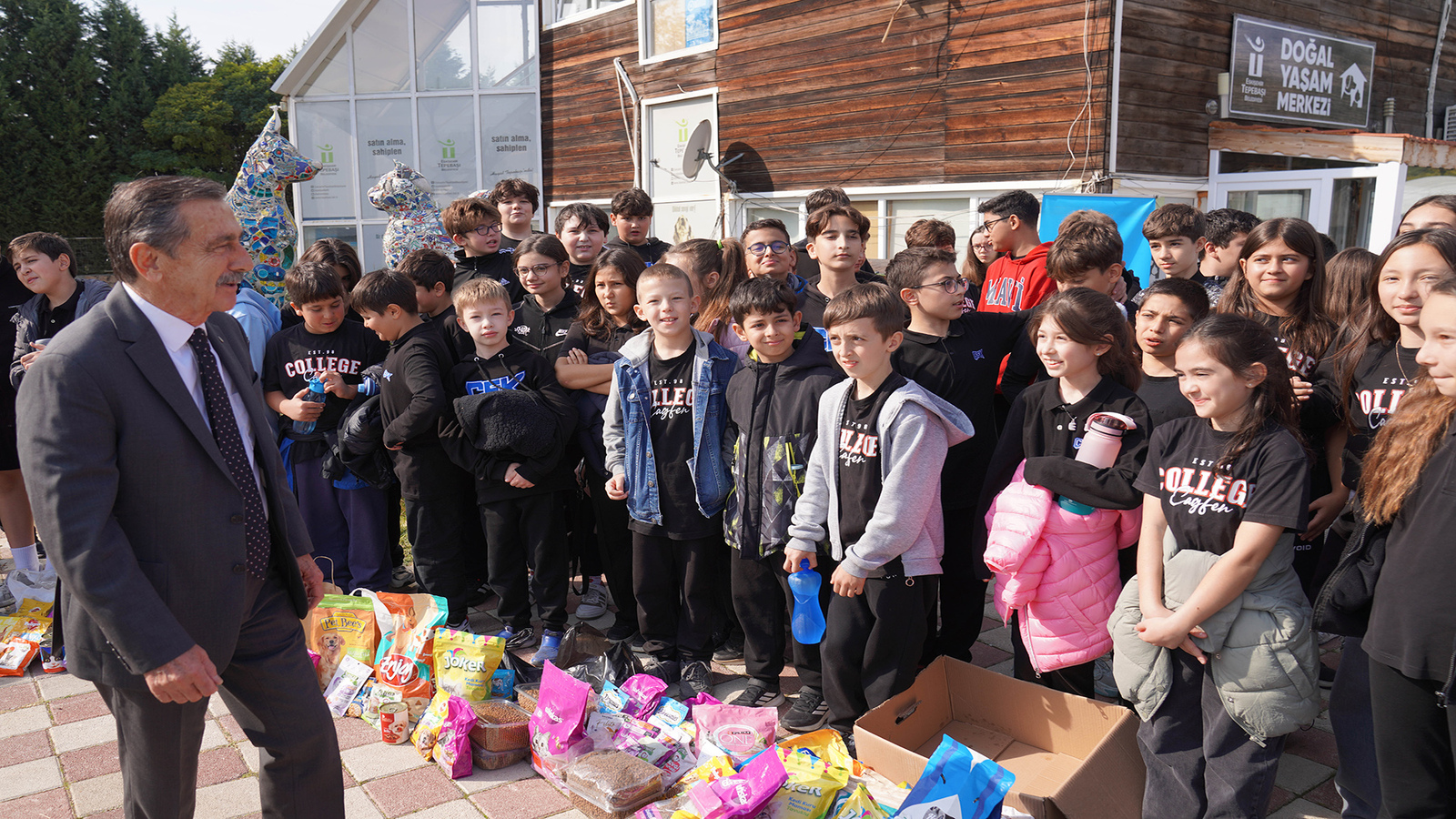 Tepebaşı Belediye Başkanı Dt. Ahmet Ataç, öğrencilerle birlikte belediyenin doğal yaşam merkezini ziyaret etti. Merkezde yapılan çalışmalar hakkında bilgi alan çocuklar, sokak hayvanları için de mama bağışında bulundu.